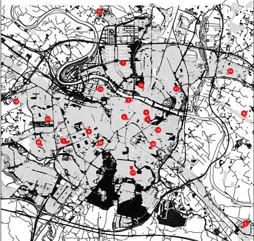 Ambos elementos se integran en el complejo del antiguo convento agustino, abriéndose a sus espacios interiores, reconvertidos en plazas públicas y lugares de descanso, abriéndose por tanto al barrio de San Agustín, mejorando la escena urbana y contribuyendo a la regeneración y revitalización del sector.