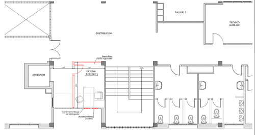 La obra ha consistido en dividir con mamparas uno de los despachos en dos, logrando ampliar el número de puestos de atención independientes, mejorar la zona de espera y tener una zona independiente para la fotocopiadora.