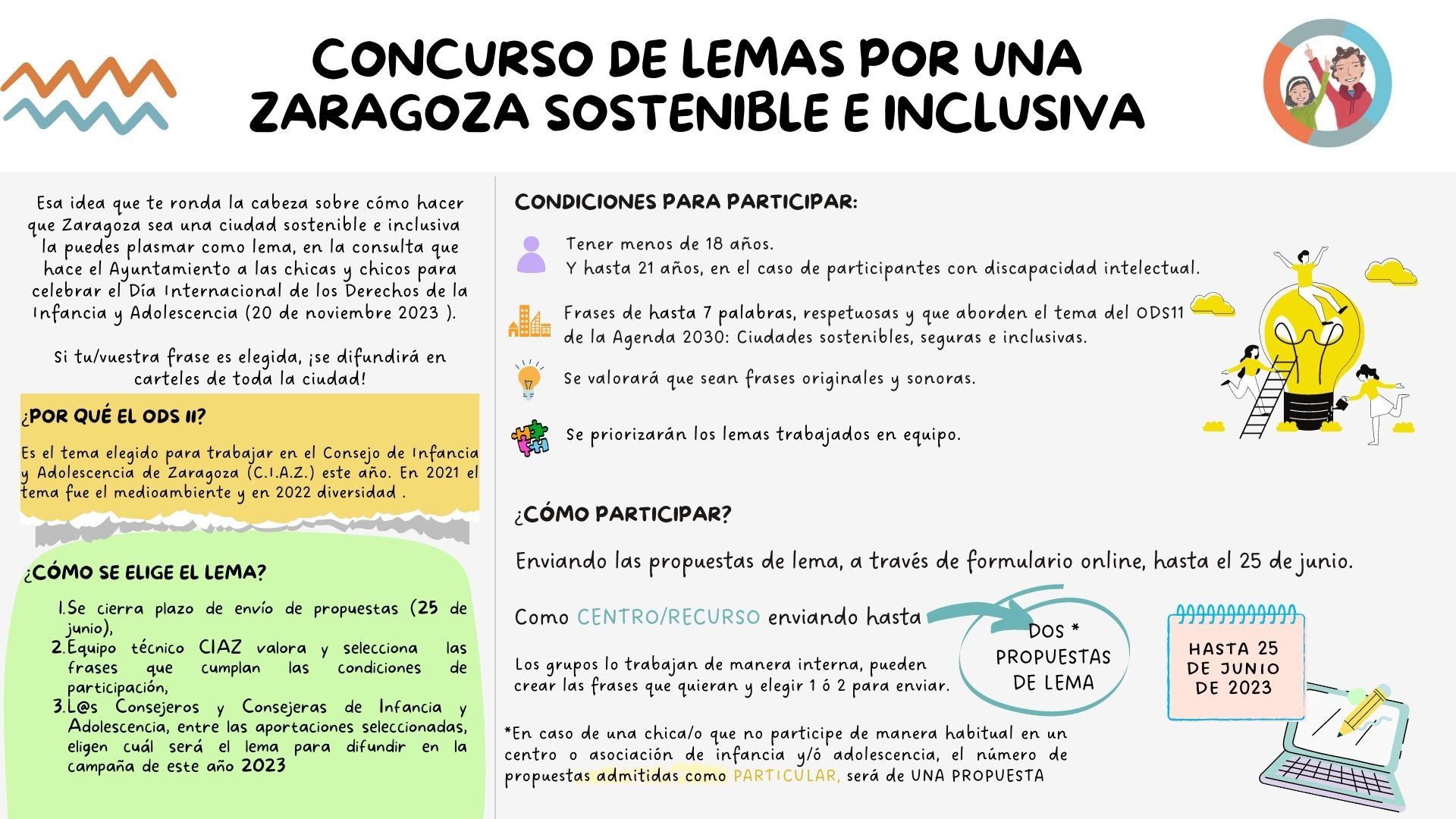 Los Consejeros y Consejeras de Infancia y Adolescencia de Zaragoza, en la sesión del 8 de septiembre de 2023, votaron entre los lemas presentados, el lema para la campaña de este este año.