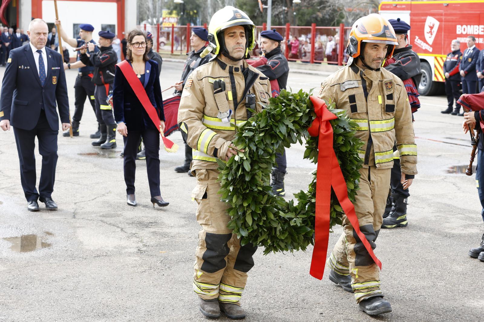 Los Bomberos de Zaragoza, que una vez más han sido valorados por los ciudadanos como el mejor servicio en el barómetro municipal, se han reunido en el parque 1 para celebrar su patrón, San Juan de Dios, en un acto presidido por la concejal delegada de Bomberos y Protección Civil, Ruth Bravo, y que ha estado amenizado por la Colla de Gaitas del Cuerpo municipal.