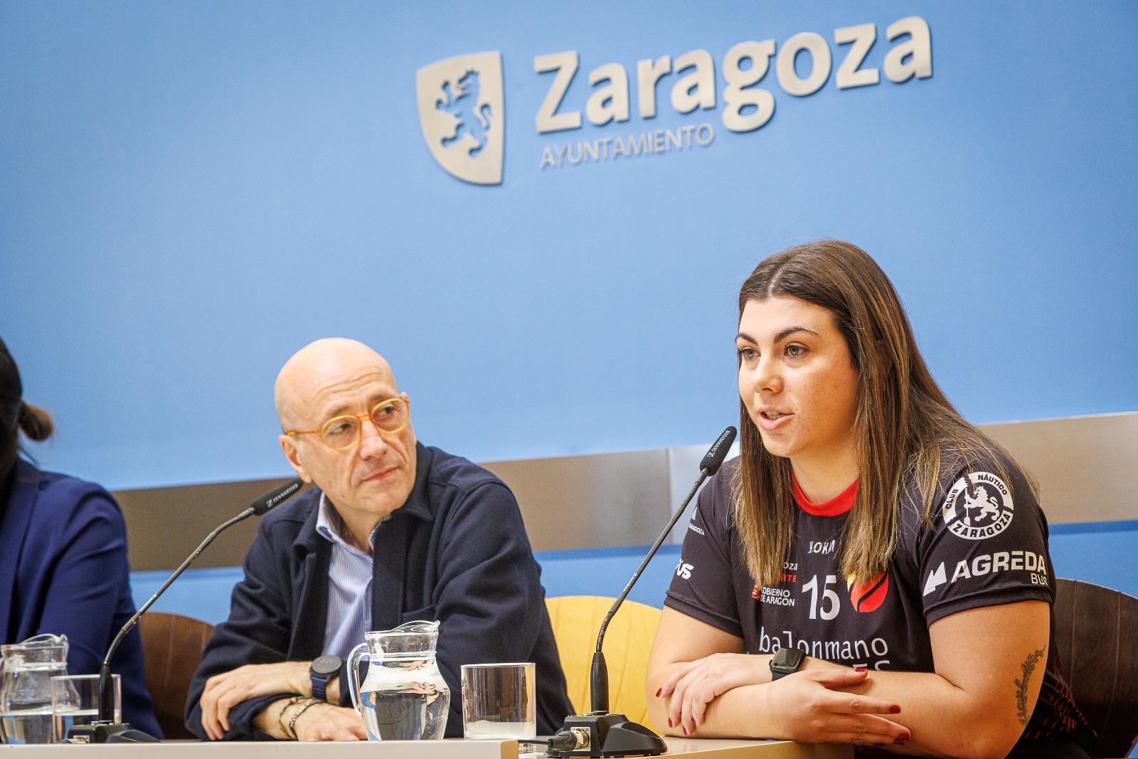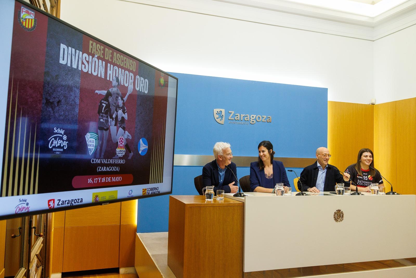 El evento ha sido presentado hoy en el Consistorio por el concejal delegado de Deportes, Félix Brocate, la directora general de Deportes del Gobierno de Aragón, Cristina García, el presidente del Balonmano Colores, Miguel Mendo, y la jugadora María Torres.
