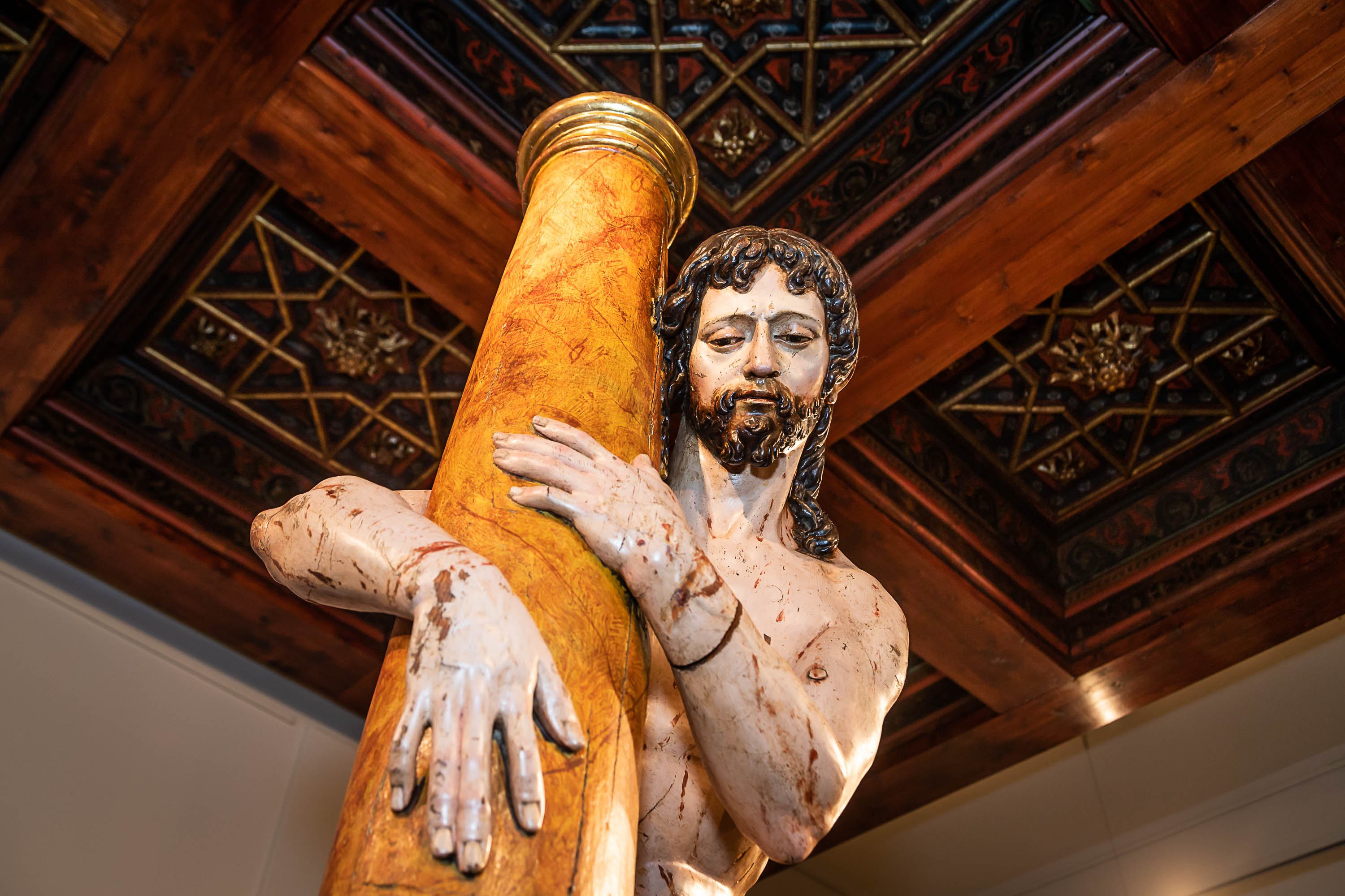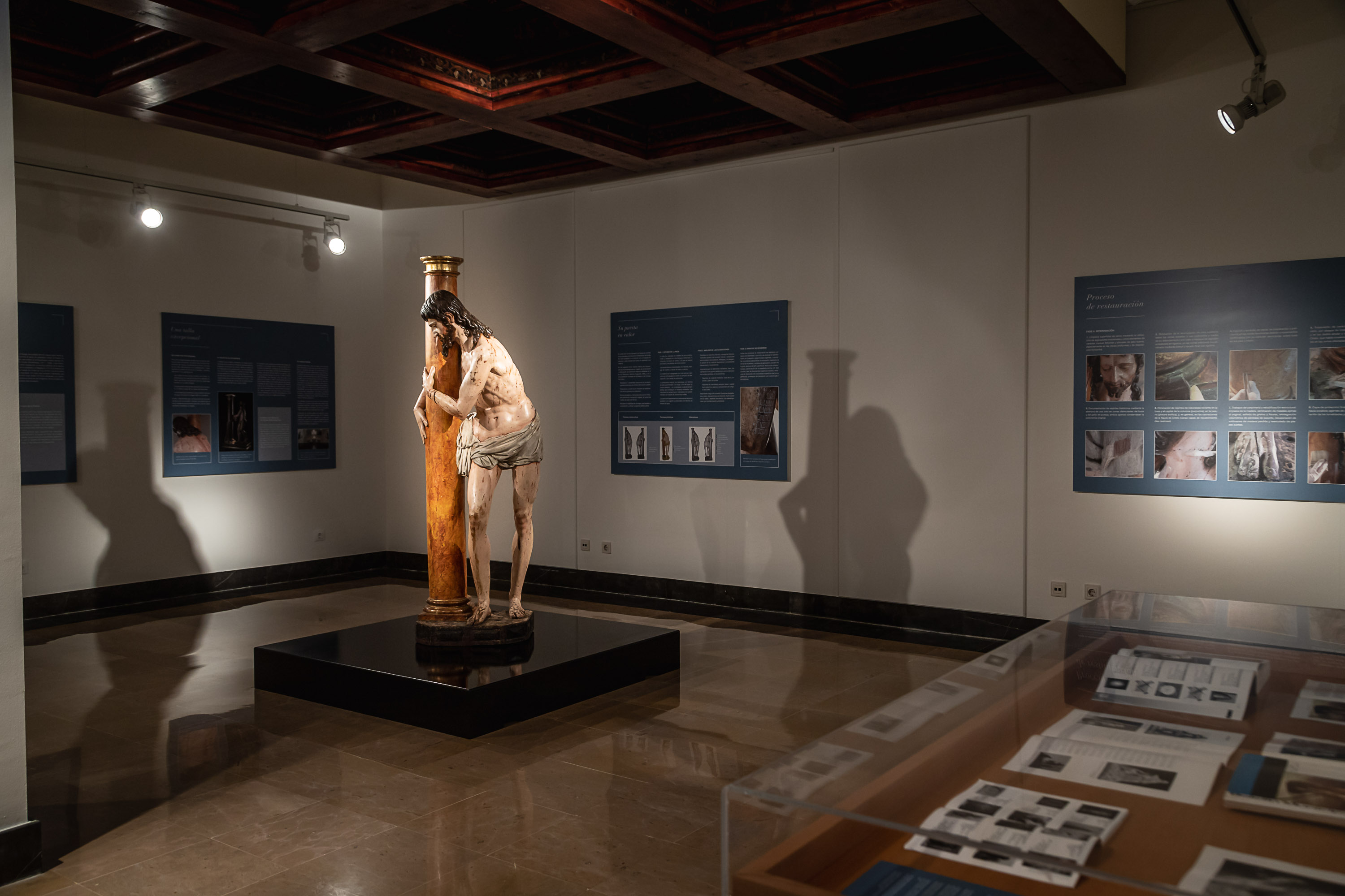 El ciclo arranca con la exposición de la talla en madera policromada "Cristo abrazado a la columna". Se trata de una de las joyas del patrimonio municipal, posiblemente de fines del siglo XVI ¿ comienzos del siglo XVII, una figura de tamaño natural, en pie, levemente inclinada y atada a una alta columna, sobre una peana, cuya altura total alcanza los 192 centímetros, y que ha sido restaurada recientemente.
