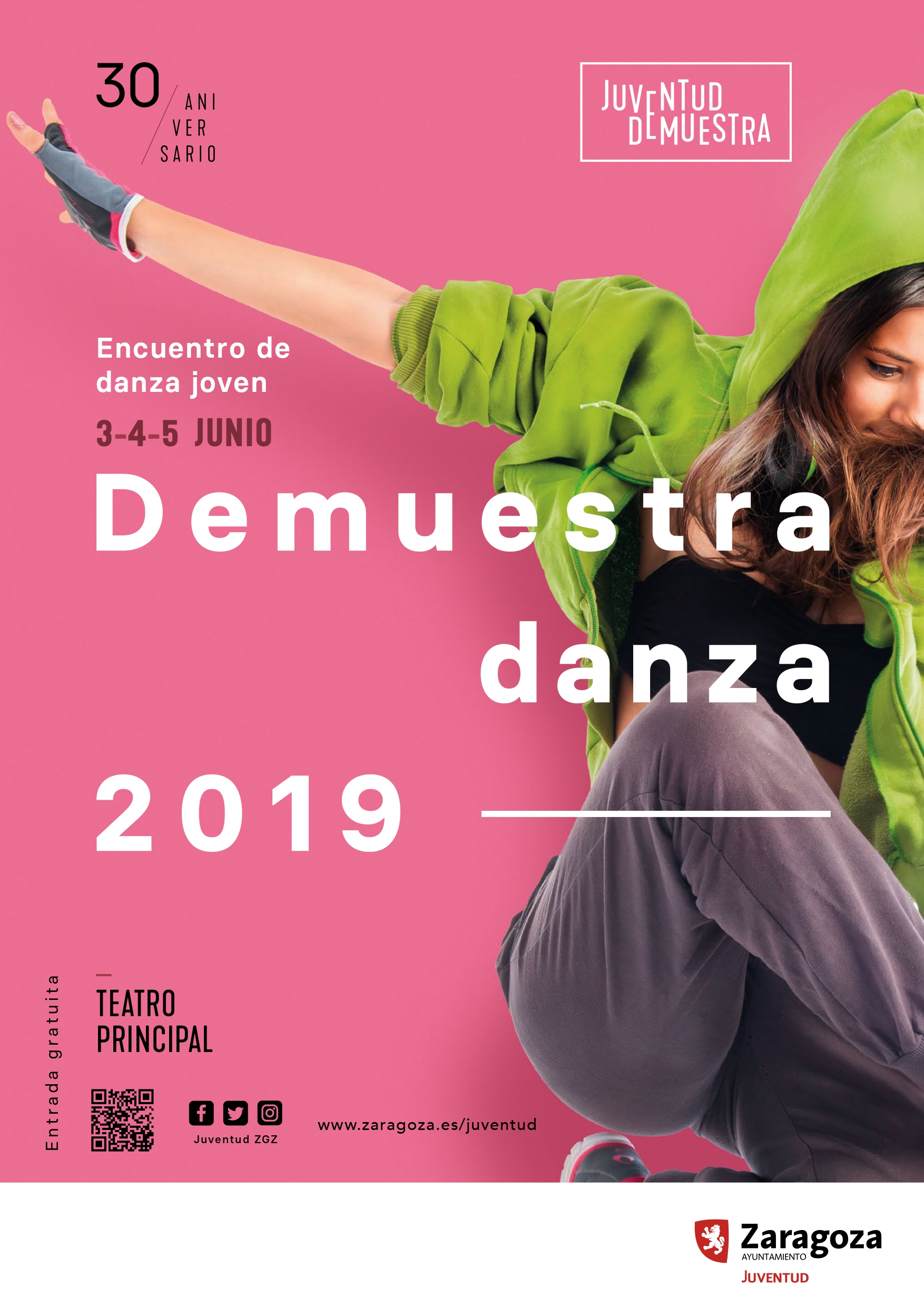 Un total de 75 grupos de danza amateur de Zaragoza se subirán al escenario del Teatro Principal los días 3, 4 y 5 de junio para exhibir sus coreografías trabajadas durante todo el curso. Se trata del ciclo 'Demuestra Danza', organizado por el Servicio de Juventud del Ayuntamiento de Zaragoza desde 1989, con gran éxito entre jóvenes y público, y que en este 30 aniversario incluirá actuaciones de estilos tan variados como street dance, funky, baile moderno, hip hop y K-Pop, entre otros.
