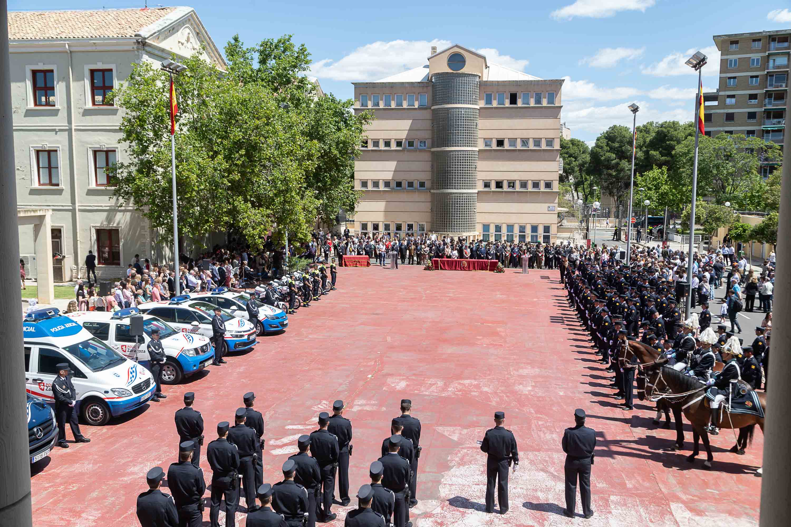 La Policía Local de Zaragoza ha celebrado esta mañana, en el Patio de la Solidaridad del Cuartel de Palafox, el día de su Patrona, la Virgen del Portillo. El acto ha sido presidido por el Alcalde de Zaragoza, Pedro Santisteve, y la concejala delegada de la Policía Local, Elena Giner. Al mismo han asistido representantes de los grupos políticos municipales, así como la Delegada del Gobierno en Aragón y distintas autoridades militares y civiles y miembros de otros cuerpos de seguridad del Estado.
