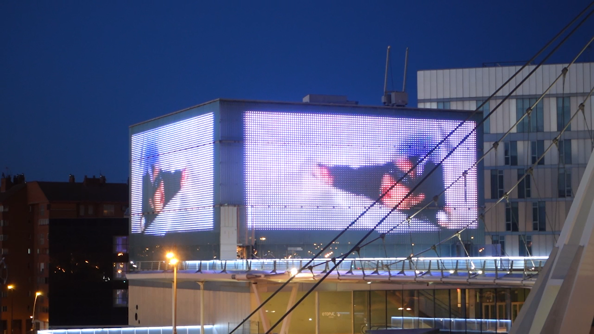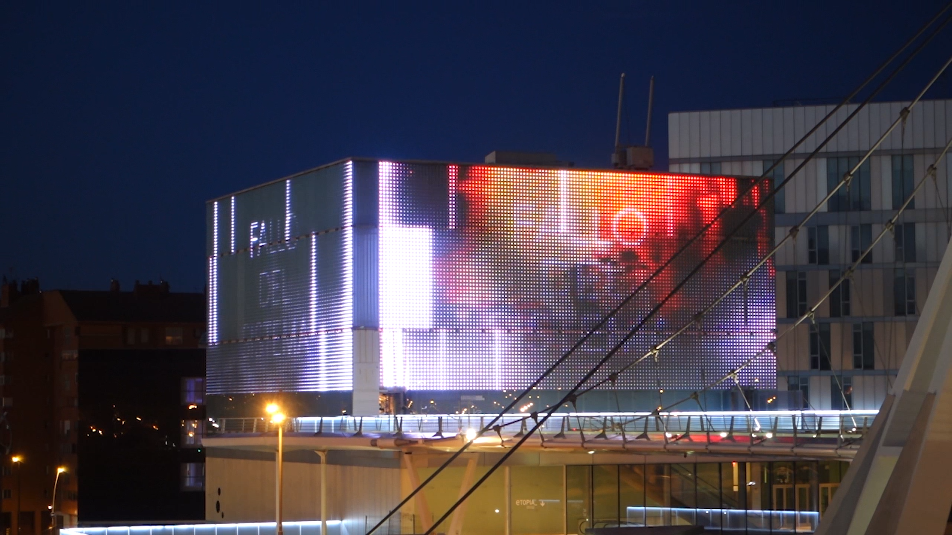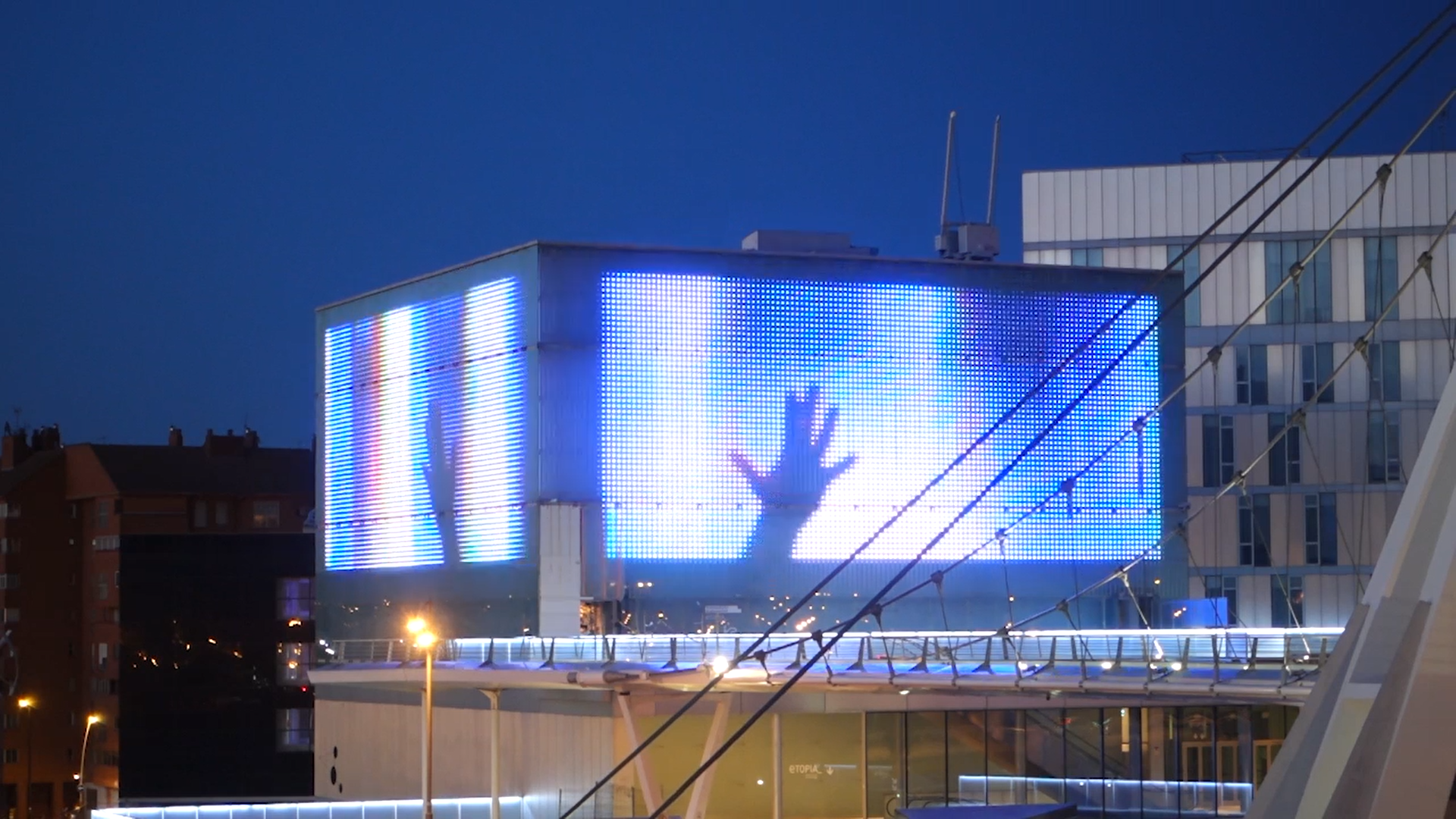 La fachada de Etopia reanuda su emisión de contenidos artísticos este verano