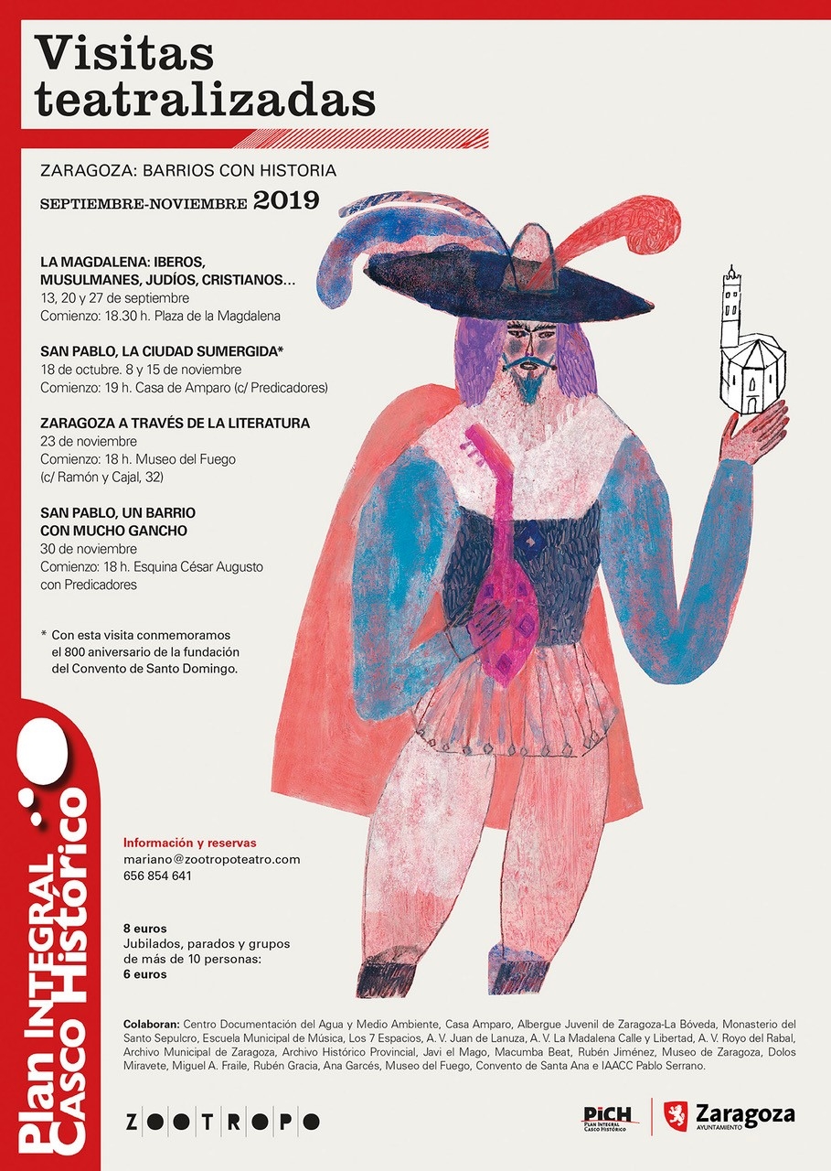 El Ayuntamiento de Zargoza, a través del Plan Integral del Casco Histórico y junto con Zootropo Teatro, ha organizado una variada oferta de visitas teatralizadas por el Casco Histórico de Zaragoza durante este segundo semestre de 2019. Mañana viernes, 20 de septiembre, se llevará a cabo una de estas visitas al barrio de La Magdalena.