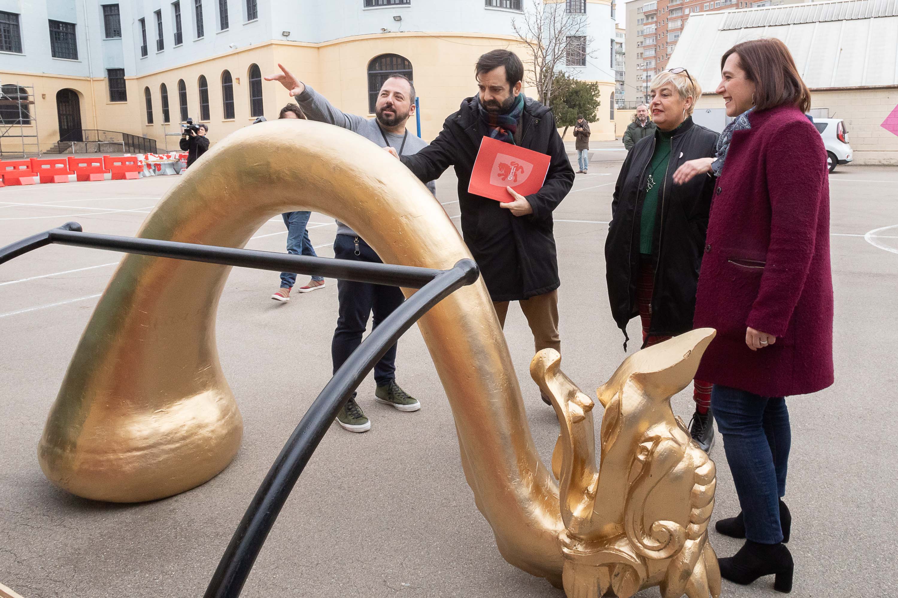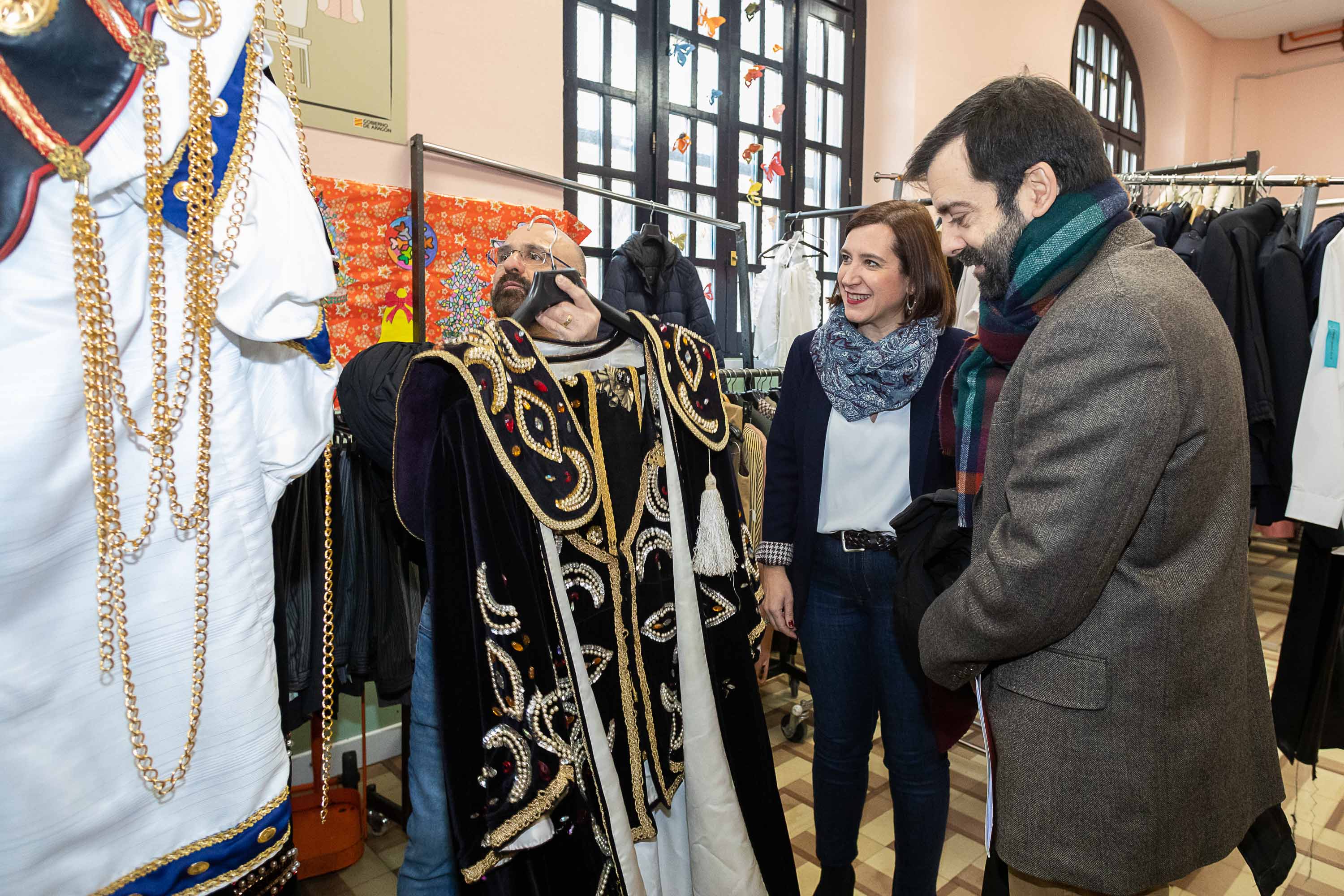 La alcaldesa accidental, Sara Fernández, acompañada por el Emisario especial de Sus Majestades los Reyes Magos y el gerente de Zaragoza Cultural, David Lozano, han acudido esta mañana al Colegio Público Joaquín Costa, donde se encuentran centralizados todos los preparativos de la Cabalgata 2020, que el próximo domingo, 5 de enero, recorrerá distintas calles del centro la ciudad.