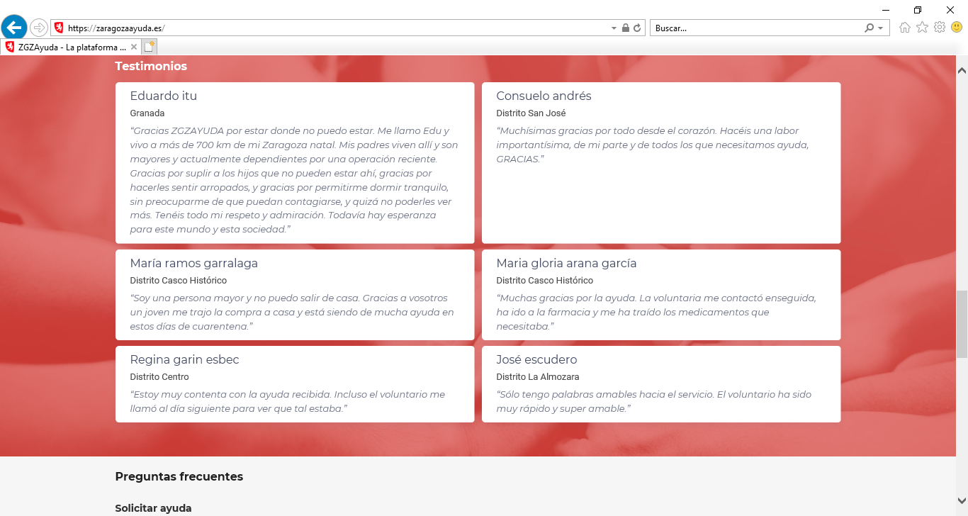 La plataforma #ZGZAyuda es una iniciativa del Ayuntamiento que busca facilitar la vida de vecinos y vecinas de Zaragoza que necesitan ayuda en su día a día durante el periodo de confinamiento y está desarrollada de forma solidaria por la consultora tecnológica aragonesa Hiberus.