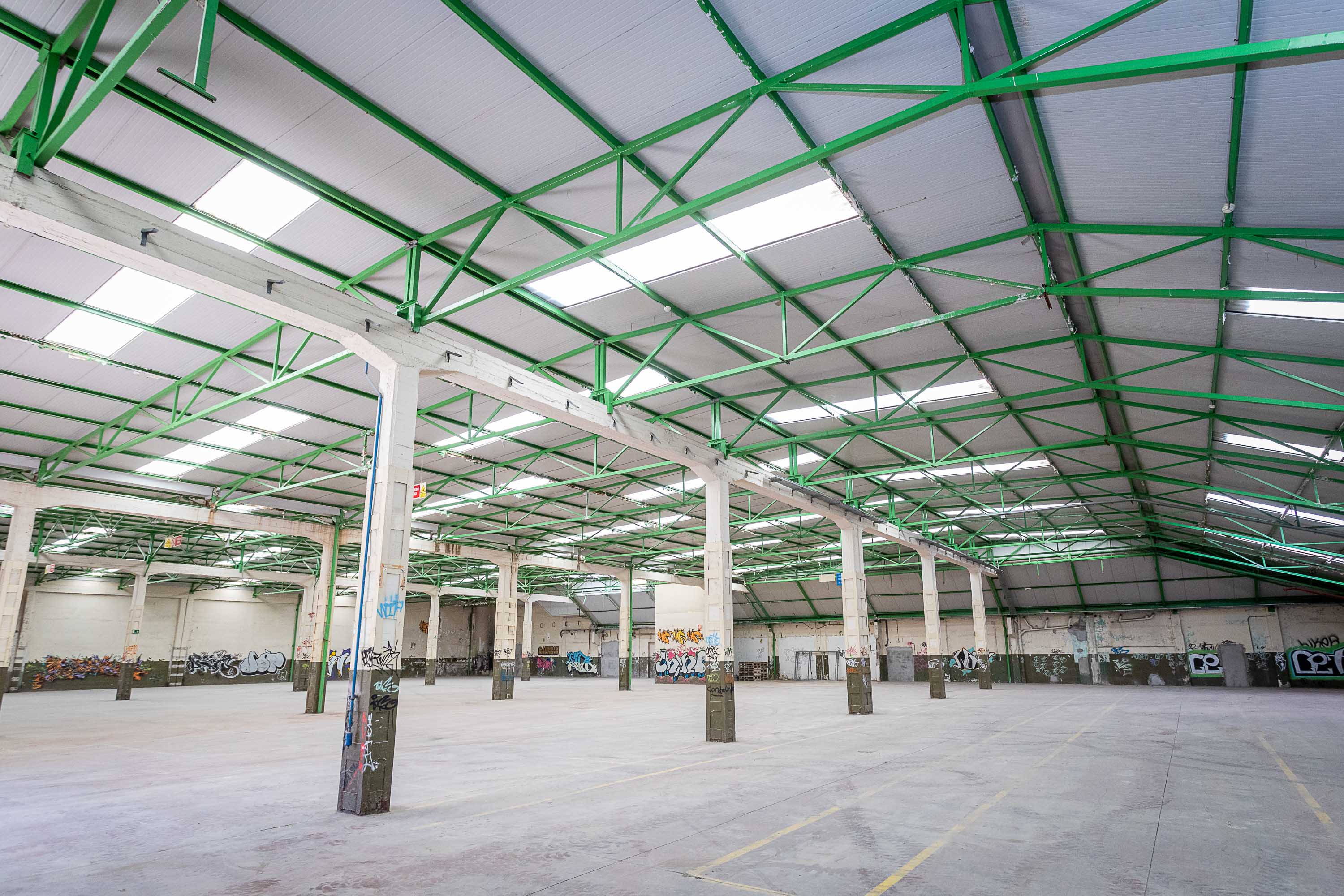 Las actuaciones principales en la antigua fábrica de Giesa han supuesto, en la parte frontal, la limpieza y protección del edificio principal catalogado (calle San Joaquín y calle Yolanda de Bar), donde se han retirado todos los elementos constructivos vandalizados: tabiques, falsos techos, mobiliario, maquinaria obsoleta, etc. También se han tapiado todas las ventanas con paneles de fibroyeso y se ha colocado metal expandido en zonas de ventilación, a lo que se han sumado las labores de pintura para simular ventanas en las zonas de fachada.