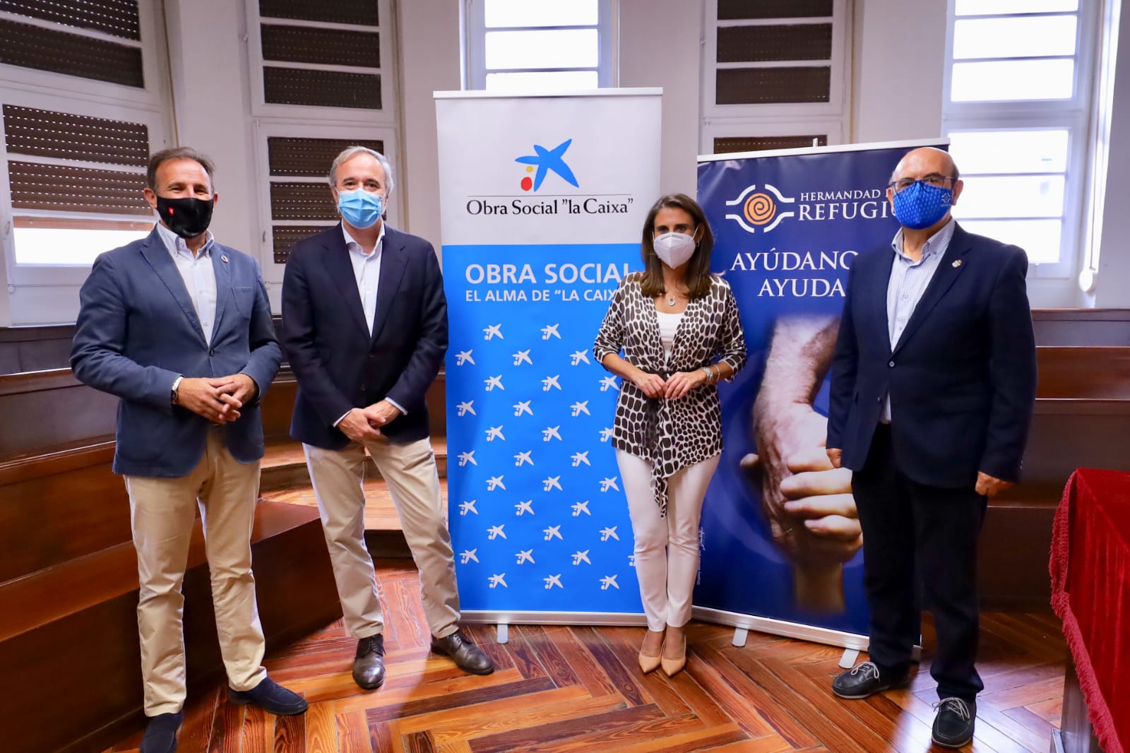 Así lo han manifestado, durante una visita a las instalaciones de El Refugio, el alcalde Jorge Azcón y la directora territorial Ebro de CaixaBank, Isabel Moreno, acompañados por el Hermano Mayor de la entidad, Santiago Sánchez. Han asistido también el consejero municipal de Acción Social y Familia, Ángel Lorén, y el responsable territorial de Acción Social de CaixaBank, Javier Muñoz.