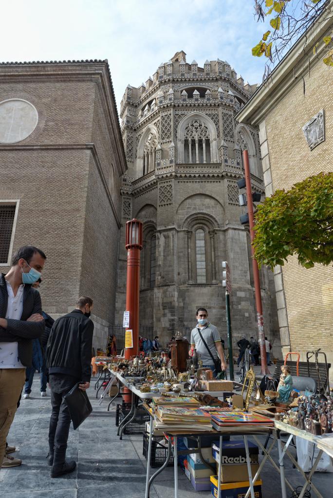 Aforos que también se van a controlar en los otros dos mercados dominicales al aire libre. En San Bruno, se van a ubicar 32 de los 60 puestos habituales, con una distancia entre ellos de 3,5 metros; y en San Francisco 13 de los 32 coleccionistas que cada domingo se colocan bajo los porches de la plaza zaragozana. Aquí la separación es de dos metros de distancia.
