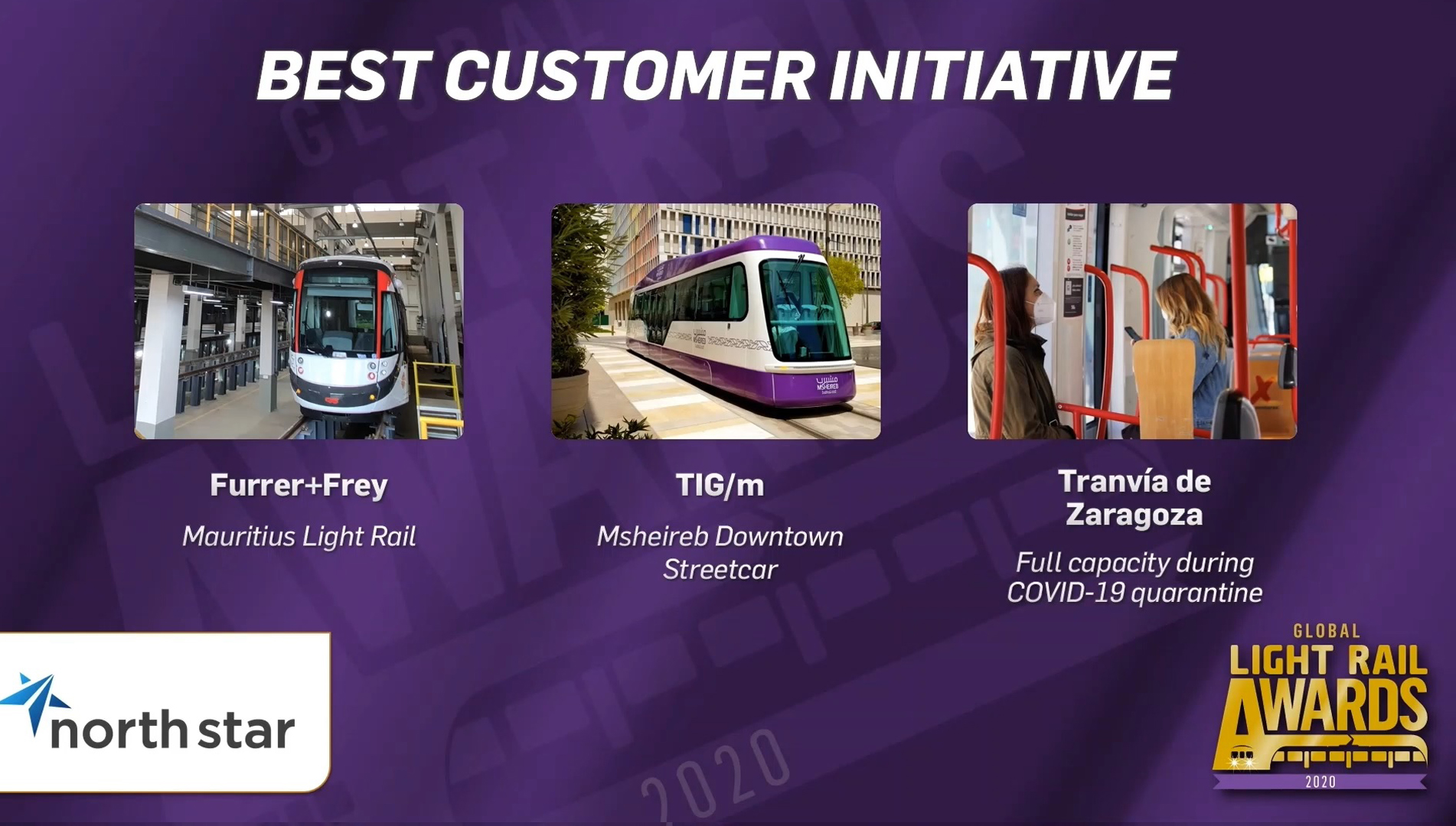 Asimismo, el Tranvía de Zaragoza ha recibido, en una candidatura conjunta con la operadora Tranvías Urbanos de Zaragoza y CAF, la Mención Especial en la categoría "Technical Innovation of the Year" ("Innovación Tecnológica del Año"), donde ha competido con el Tranvía de Doha y las empresas Furrer + Frey (Suiza) y Ian Rowe Associates (Reino Unido). Zaragoza también estuvo nominada en una categoría más: "Premio a la Mejora del Sistema" ("Most Improved System"), junto a los tranvías de Moscú y Birmingham. En estas dos últimas categorías, el Tranvía de Zaragoza ha sido valorado por la implantación, culminada este 2020, de todos los sistemas que permiten que sea el primer tranvía español en contar con un taller 100% digital.