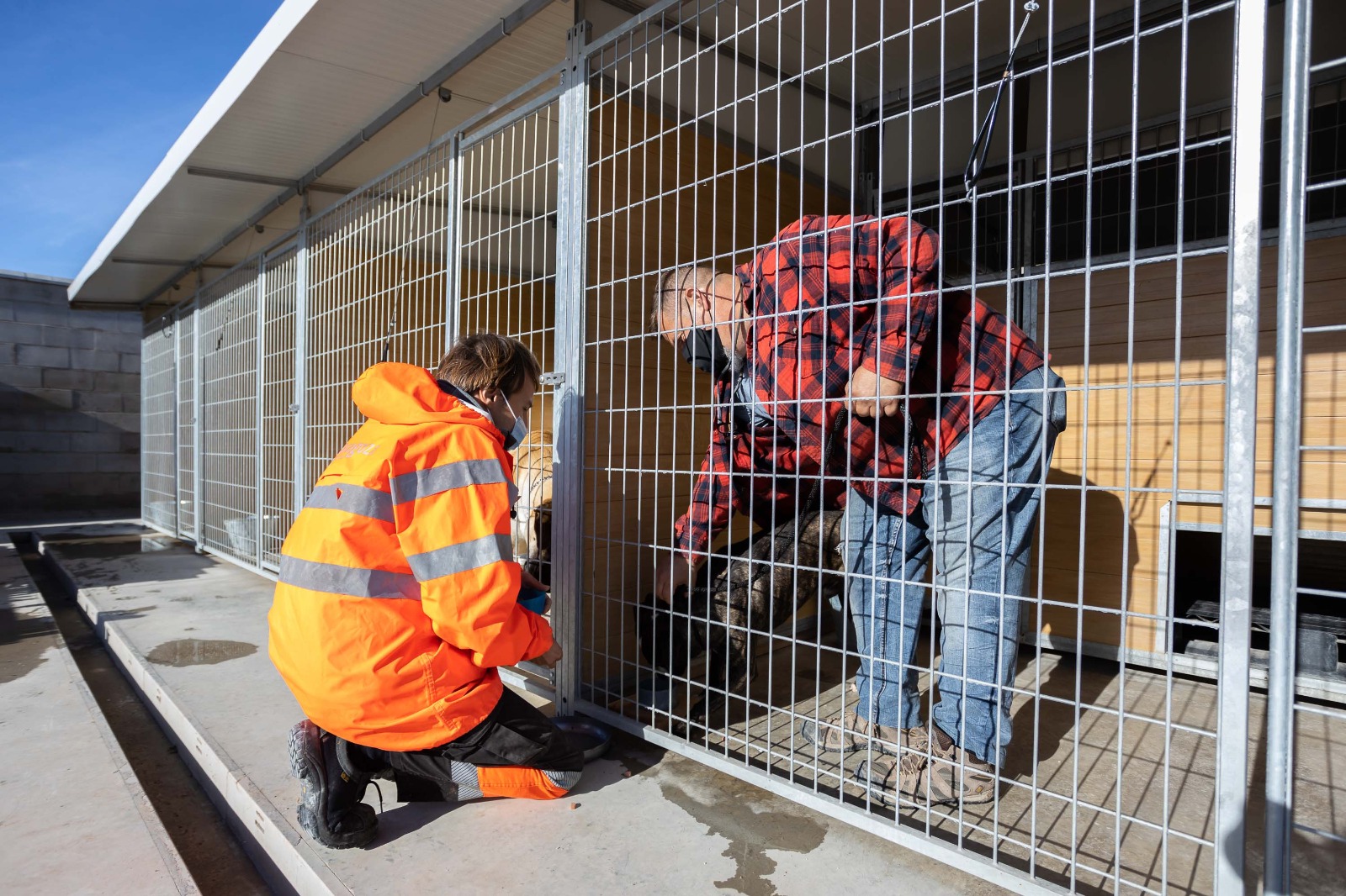Entre estas tareas, les enseñan a colocar el bozal y la correa de una forma positiva, haciendo que el animal lo integre en su rutina sin sobresaltos. Es más, consiguen que sea el propio perro el que dirija su cabeza al bozal para una colocación más fácil. Las entradas y salidas del chenil suele ser también un momento de riesgo para el operario, algo que están superando también con técnicas para mantener al animal entretenido en ese momento.