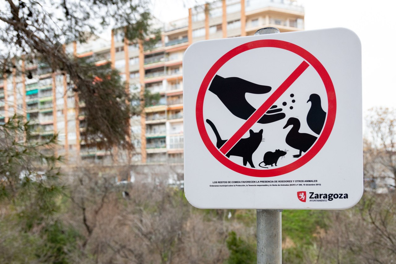 Algo parecido sucede con la alimentación de animales en la vía pública, algo prohibido por las ordenanzas municipales y que sólo puede realizarse en sitios autorizados por el personal acreditado para ello. En los últimos meses se han instalado distintas señales advirtiendo de esta prohibición en distintas plazas y parques de Zaragoza. "Los patos y las palomas, por ejemplo, no necesitan ser alimentados y, reiteramos, está prohibido echarles comida. En el caso de las colonias felinas, sólo los voluntarios responsables tienen autorización para ello", explican desde de Instituto de Salud Pública.