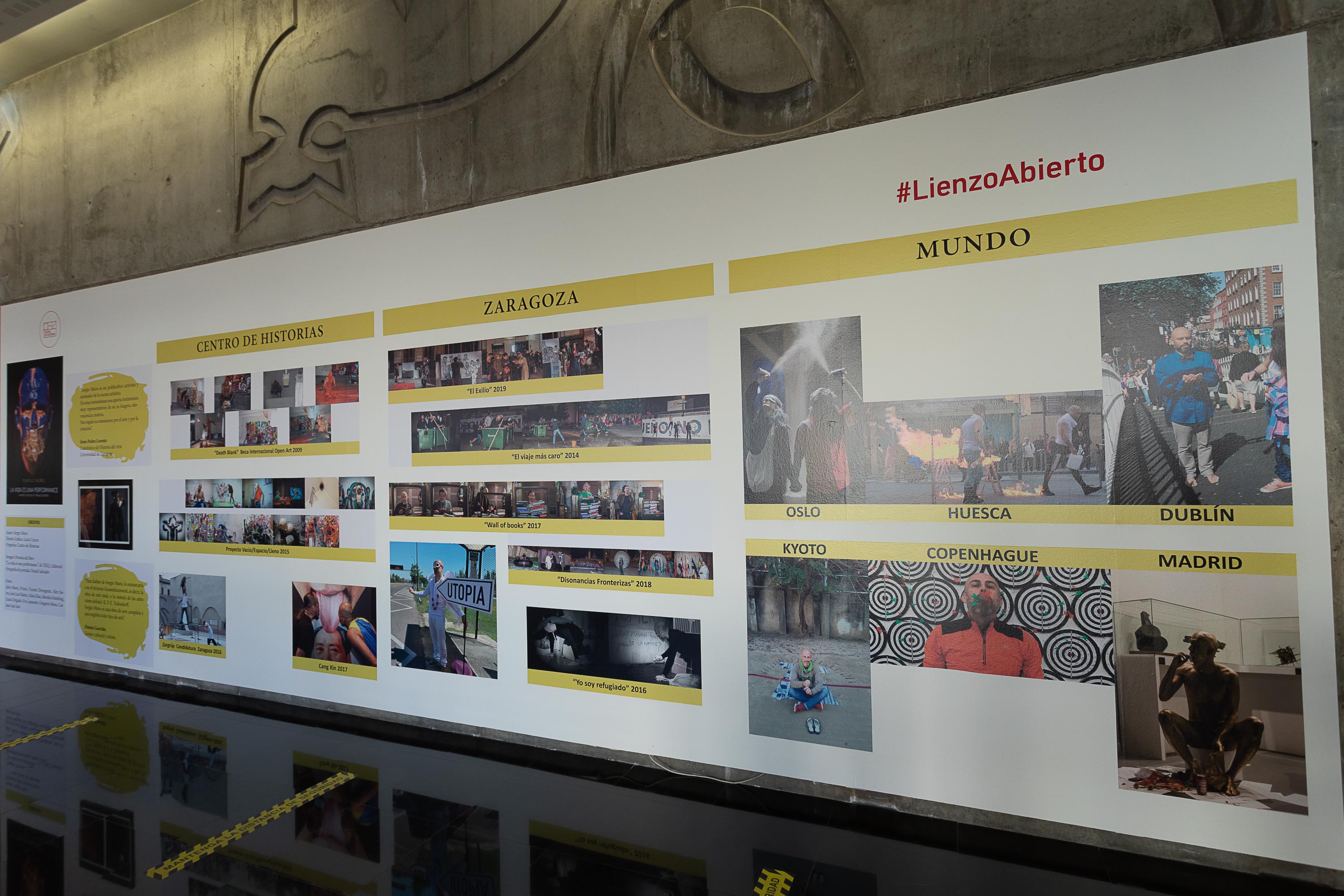 Esta nueva instalación se divide en distintas partes, en las que el artista realiza un recorrido, a través de diferentes fotografías, por las performances que ha llevado a cabo en el Centro de Historias, en Zaragoza, así como en diferentes lugares fuera de nuestras fronteras.