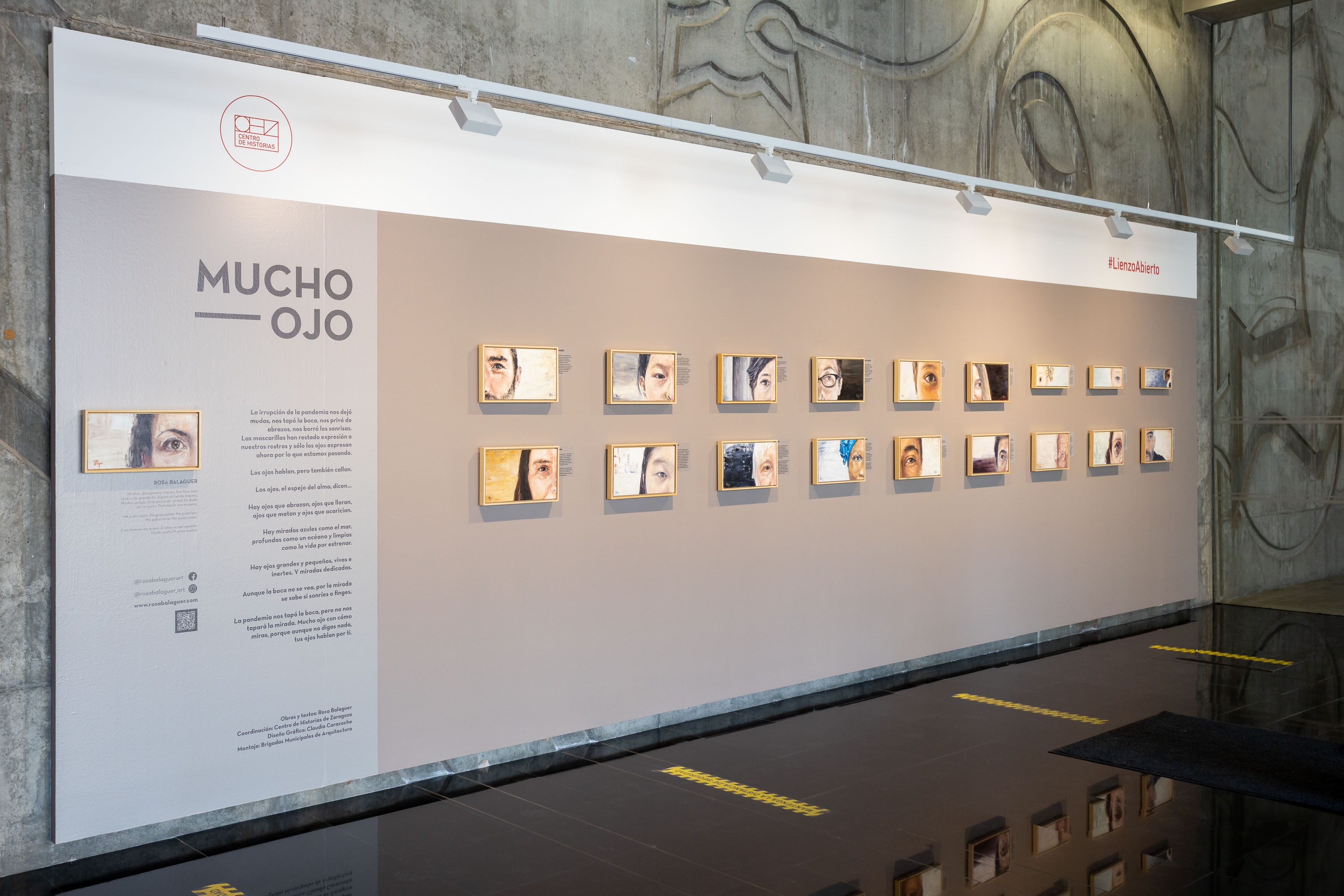 La muestra está integrada por 19 obras originales, de las cuales 18 son retratos de diferentes personas y un autorretrato de la autora. Son pinturas al óleo en las que los protagonista son sus ojos, uno de los sentidos que destacan en estos momentos de pandemia con la utilización diaria de las mascarillas. Como señala Rosa Balaguer "esta muestra es una pequeña reivindicación del alma de las personas, la manera de mostrar que aunque se nos prohíba el contacto, podemos abrazar con la mirada, descubrir que detrás de la despersonalización impuesta por las mascarillas hay historias muy diferentes".