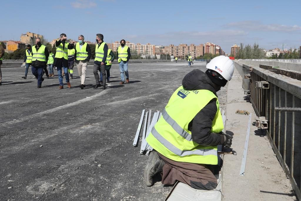 Las obras de prolongación de la avenida de Tenor Fleta para su conexión con la Ronda Hispanidad avanzan a buen ritmo, han ejecutado ya el 21% de su presupuesto y se concentran en estos momentos sobre el cajón ferroviario. Así lo ha comprobado esta mañana el alcalde de Zaragoza, Jorge Azcón, quien ha visitado la evolución de las obras junto al consejero municipal de Urbanismo y Equipamientos, Víctor Serrano.