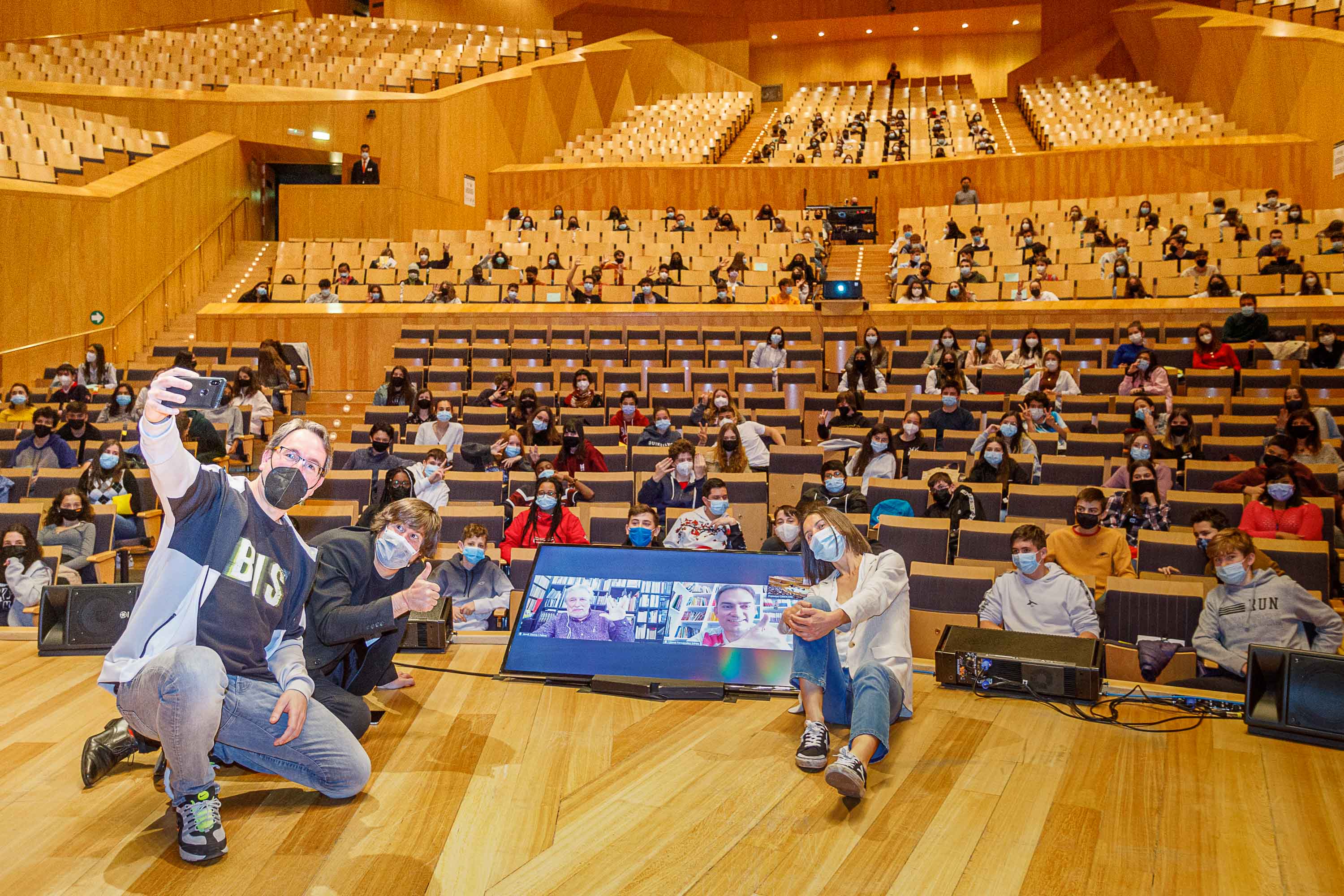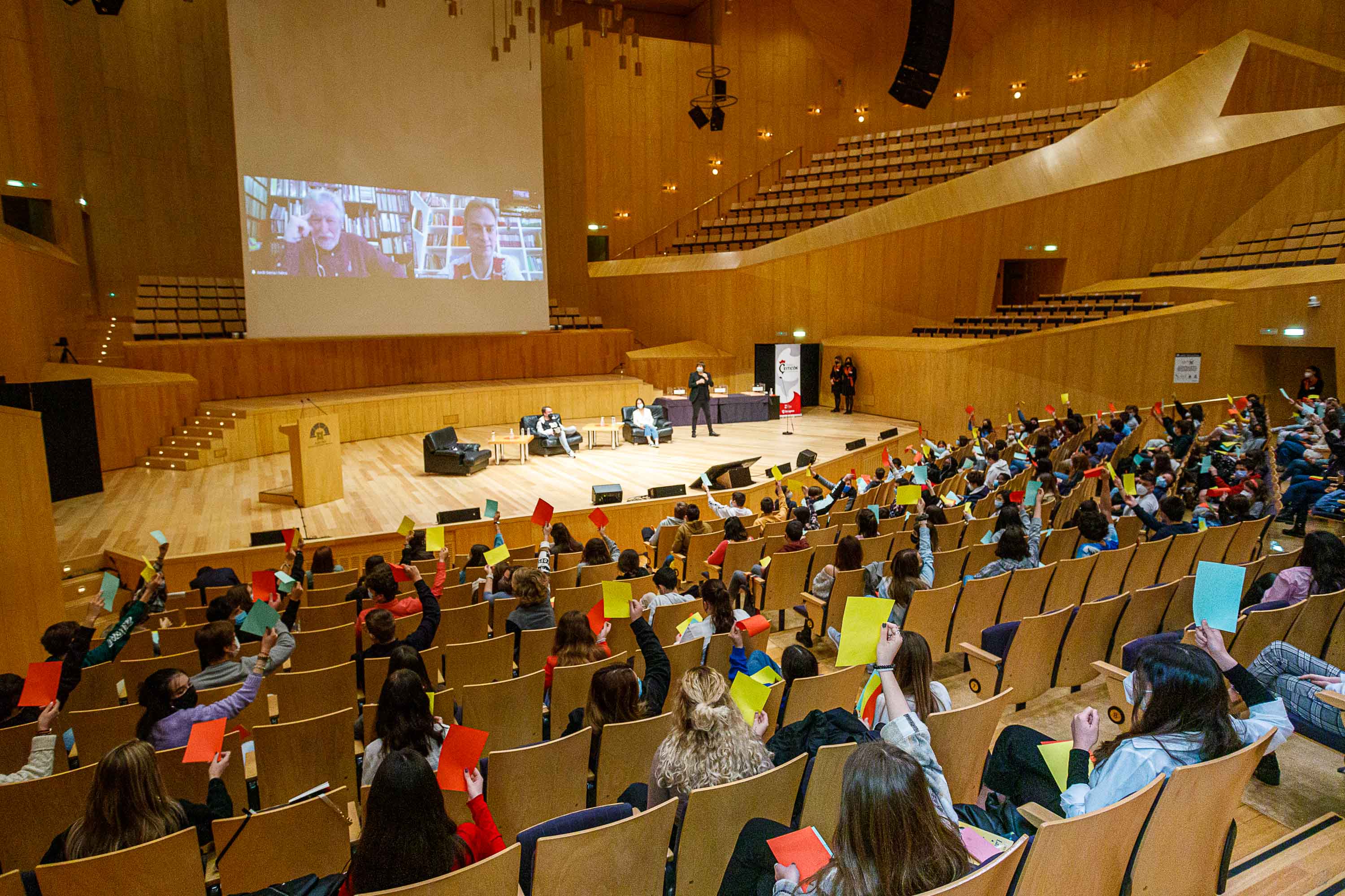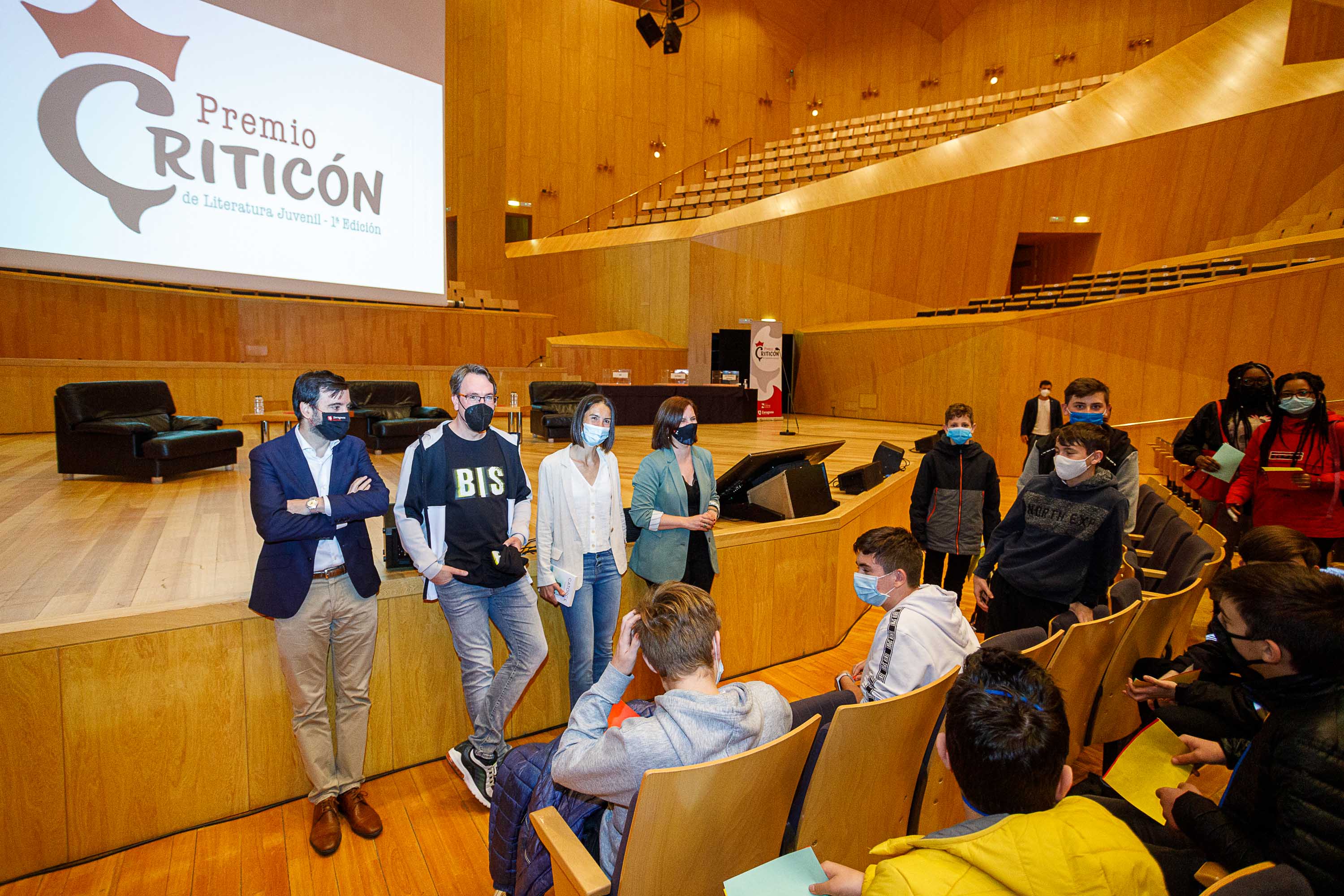 Esta mañana se ha celebrado en la Sala Mozart del Auditorio de Zaragoza el encuentro de estudiantes con los autores de los tres libros seleccionados de la primera edición del Premio "Criticón" de jóvenes lectores, una iniciativa que ha puesto en marcha el Ayuntamiento de Zaragoza, a través de la Sociedad Zaragoza Cultural, durante este curso 2020/2021.
