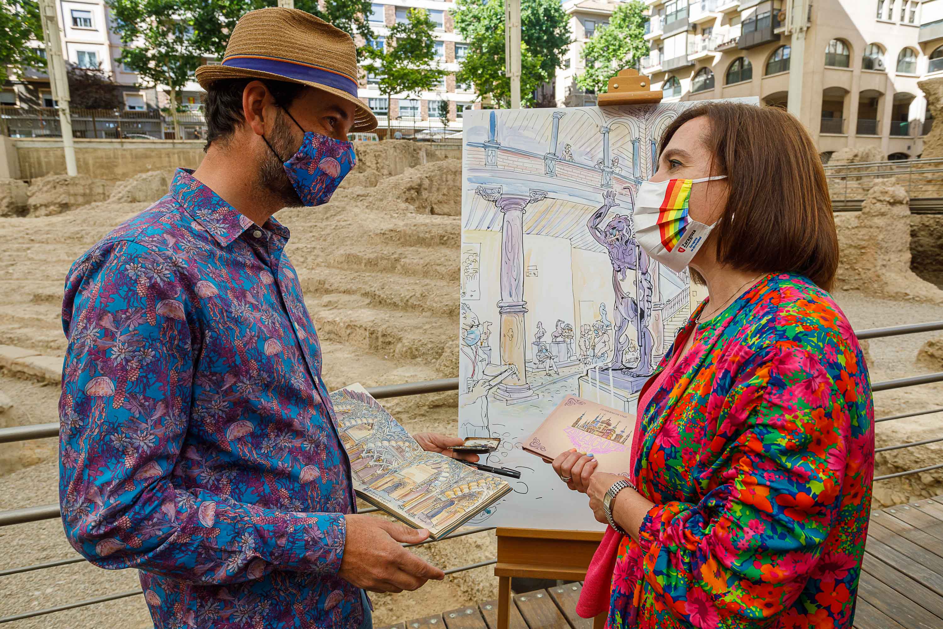 La vicealcaldesa y consejera de Cultura y Proyección Exterior, Sará Fernández, ha presentado esta mañana en el Museo del Teatro de Caesaraugusta el "cuaderno de Zaragoza", un viaje ilustrado sobre la ciudad de Zaragoza, obra del dibujante francés Lapin.