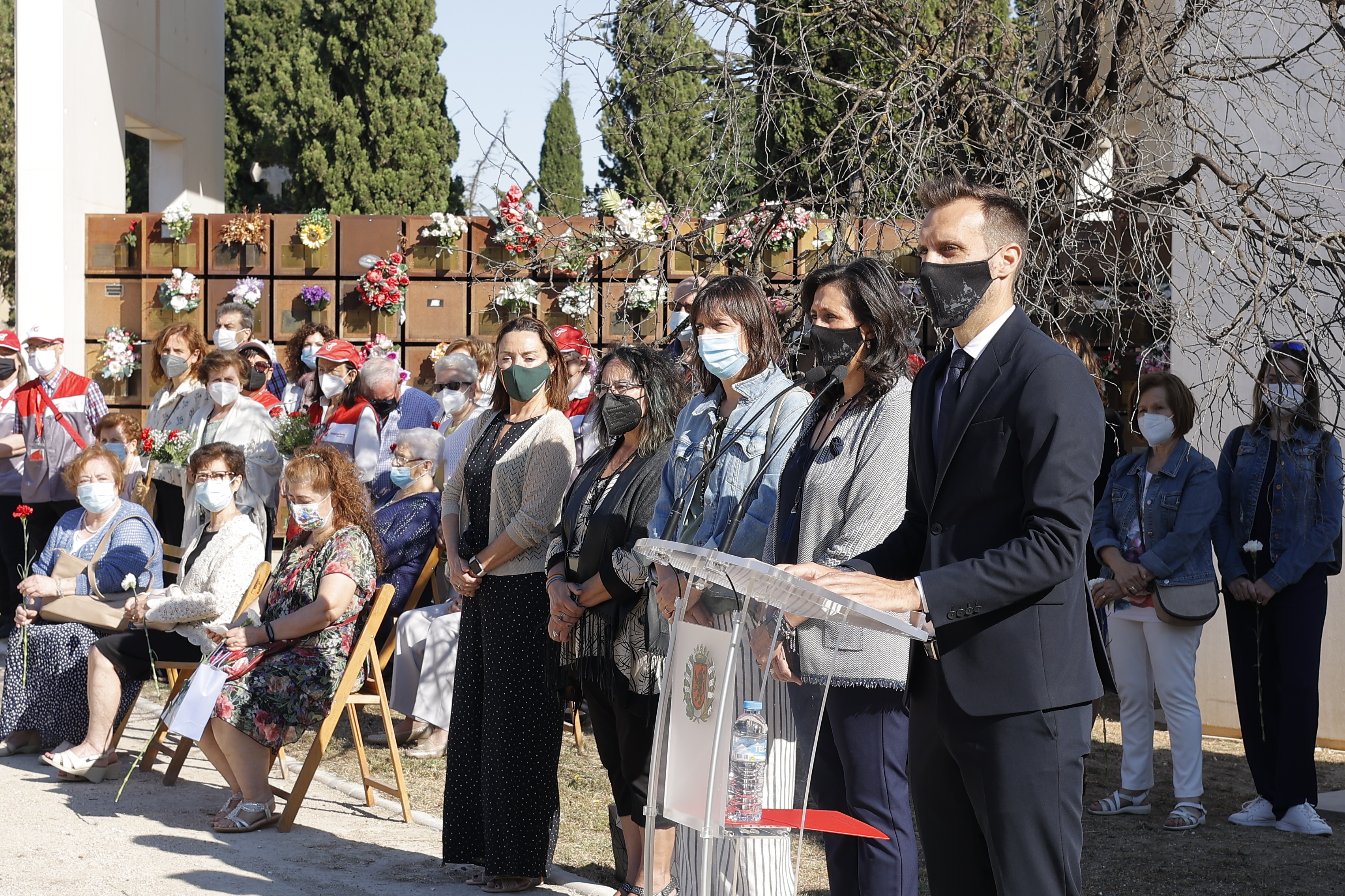 La Plaza del Voluntariado del Cementerio de Torrero se ha impregnado de música y palabras durante una ofrenda floral en recuerdo de estos voluntarios