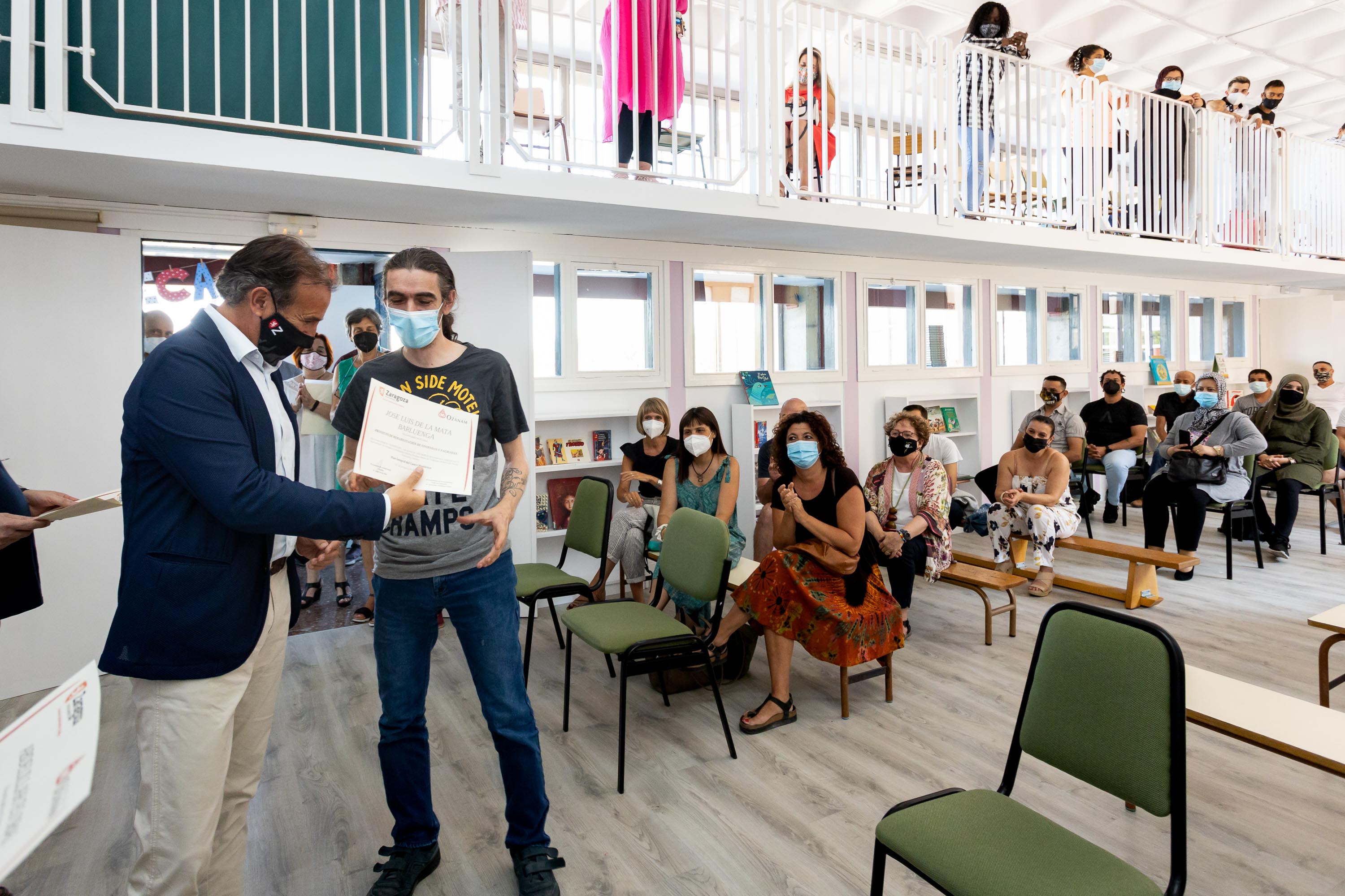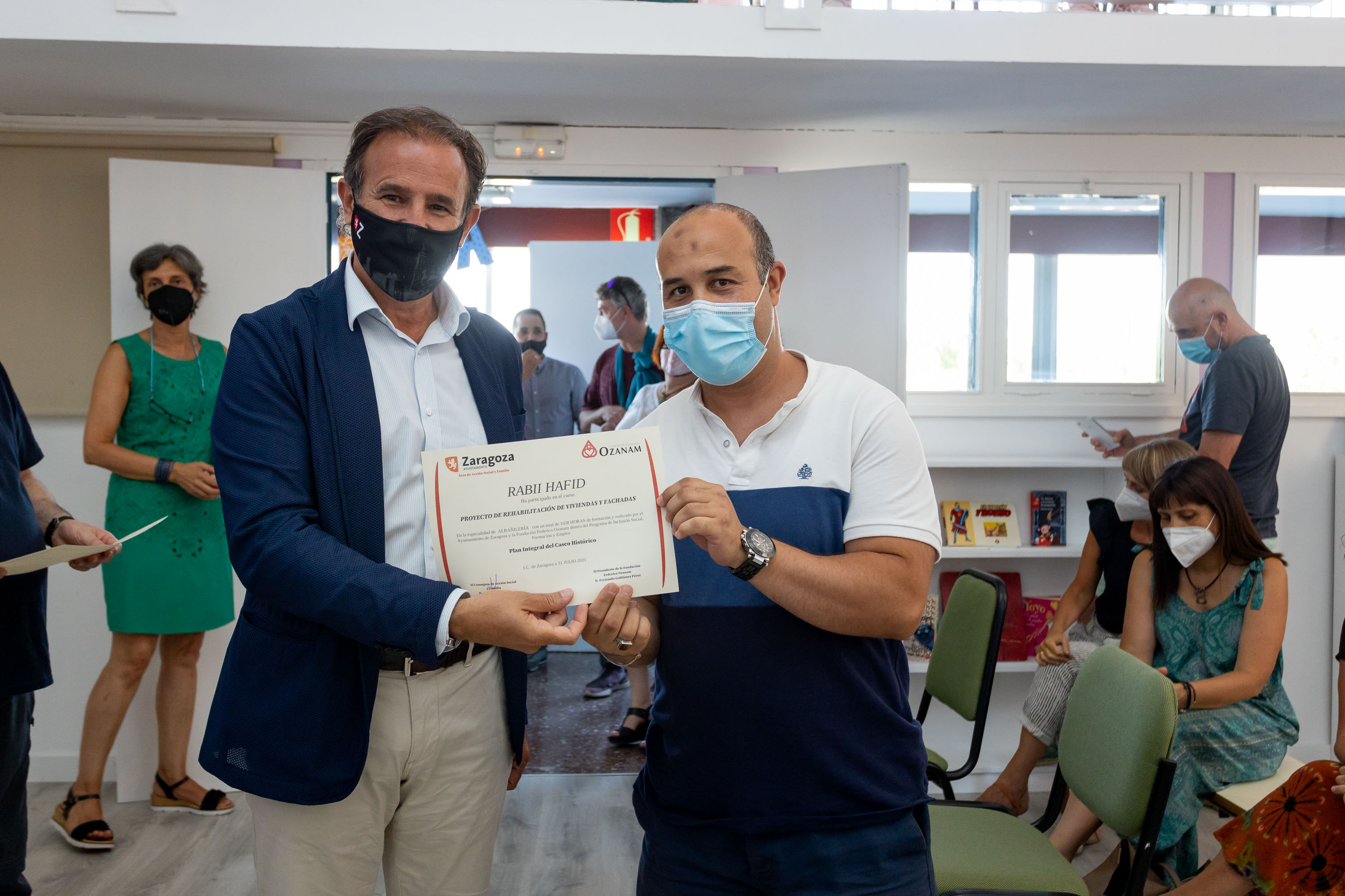 El consejero de Acción Social y Familia del Ayuntamiento de Zaragoza, Ángel Lorén, ha entregado hoy los diplomas a los 46 participantes del proyecto de rehabilitación de viviendas y fachadas impulsado por la Fundación Federico Ozanam y financiado por el Consistorio a través del Plan Integral del Casco Histórico (PICH).