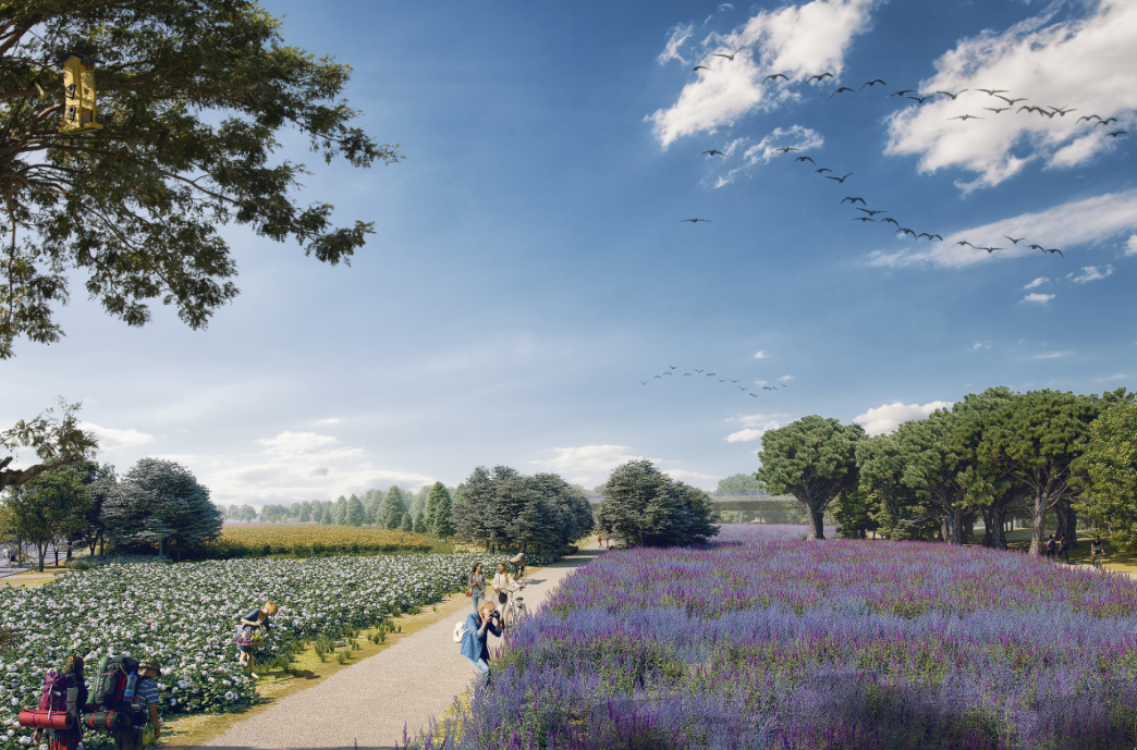 Los citados trabajos de preparación del terreno incluirán, en el futuro, la creación de dos humedales, con sus pasarelas peatonales de acceso. Las especies arbóreas se distribuirán por las diferentes parcelas creando espacios diversos que generen un paisaje homogéneo pero también variado.