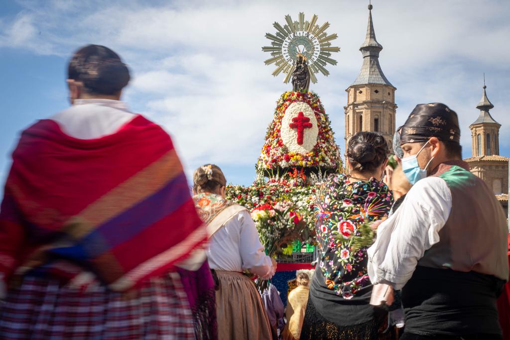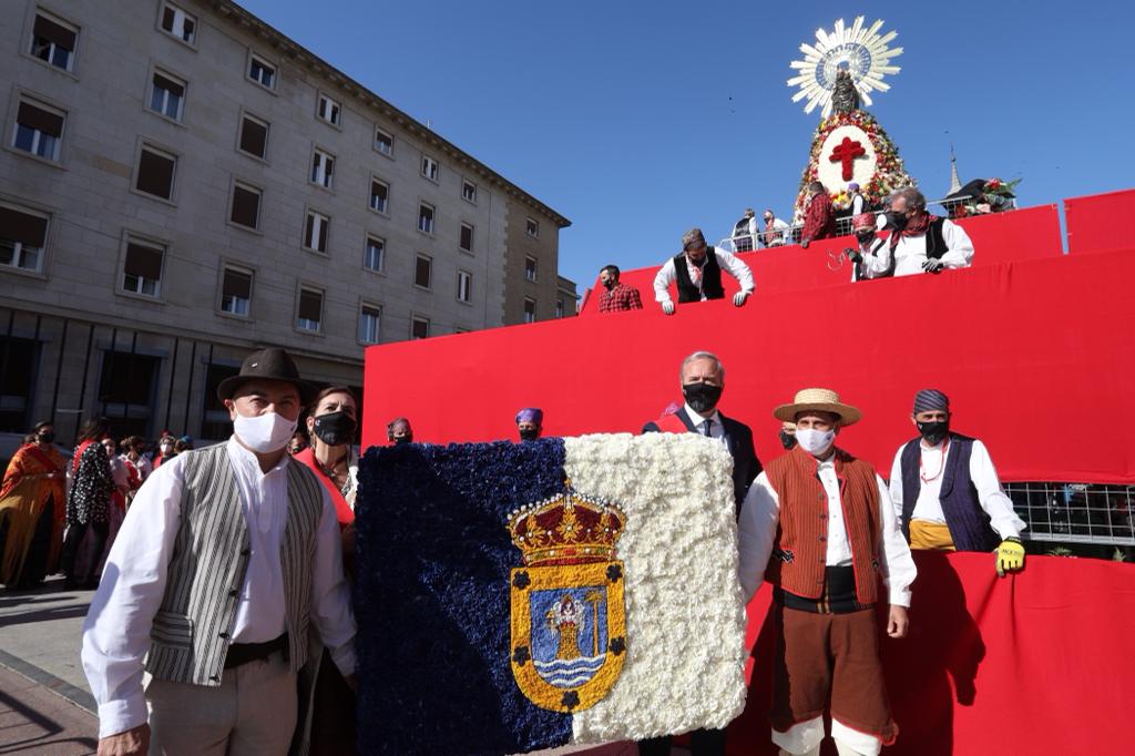 Zaragoza ha podido volver a celebrar hoy 12 de octubre uno de los actos más populares y queridos por la ciudadanía, como es la Ofrenda de Flores a la Virgen. Ha sido una ofreda diferente, reducida, en la que podían participar un máximo de 20.00 personas y cumpliendo con todas las medidas de prevención y seguridad marcadas por las autoridades sanitarias.