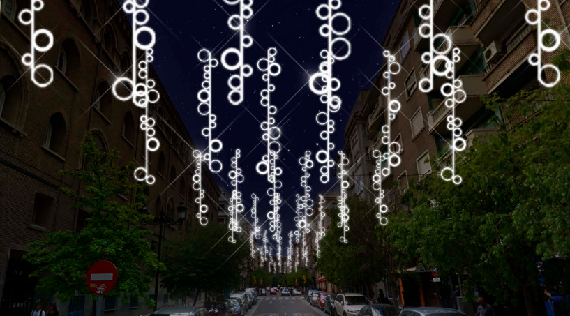 Para ello se están colocando nuevas arcadas luminosas en Clara Campoamor, Tomás Bretón, León XIII o la calle Delicias. También se van a iluminar más de 160 árboles en las calles Sobrarbe, Compromiso de Caspe y Avenida de América, de forma similar a lo que se viene haciendo en Don Jaime.
