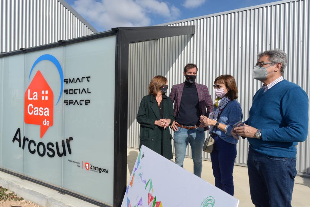 La Casa de Arcosur es ya una realidad. El consejero de Participación y Relación con los Ciudadanos del Ayuntamiento, Javier Rodrigo, acompañado por la concejal María Antoñanzas, presidenta de la Junta de Distrito Sur, y la concejal delegada de Vivienda, Carolina Andreu, ha inaugurado este sábado este equipamiento municipal que desde este sábado abre sus puertas a todos los vecinos y vecinas del barrio como una extensión del Centro Cívico Distrito Sur.