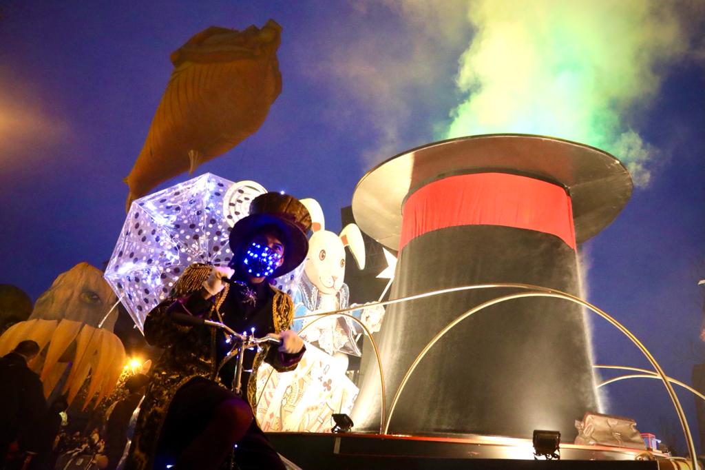 La magia ha estado presente en la cabalgata con la carroza “La gran chistera’, el sombrero mágico más grande del mundo, al que seguían hinchables de medusas, salamandras, peces de colores, caballitos de mar, pájaros multicolores, un cangrejo y hasta un pulpo gigante, todos ellos convertidos en sueños al alcance de la mano. Y a continuación la carroza cañón ha estado amenizada por un Dj con música y proyecciones de video.