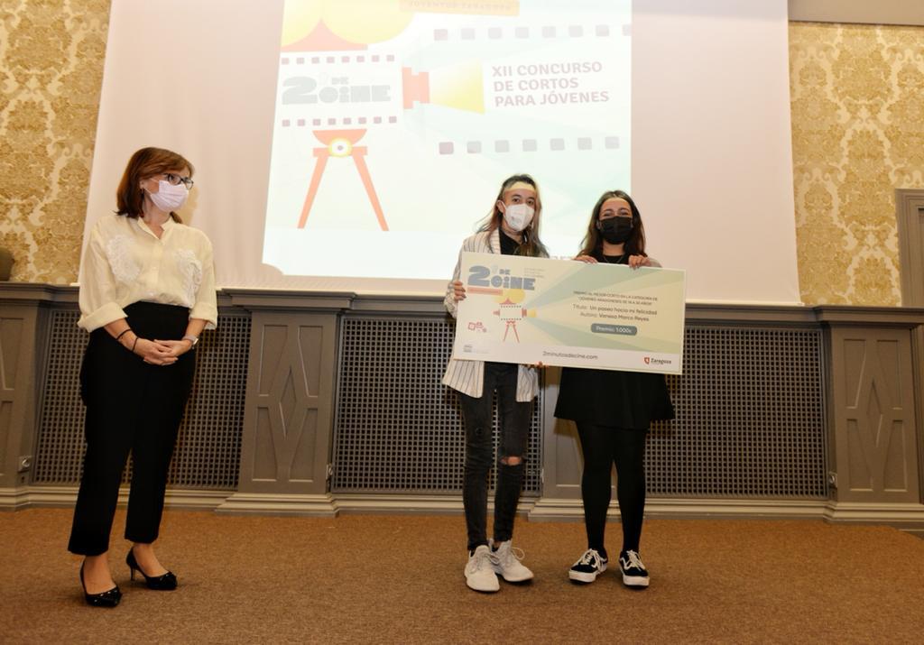 El Ayuntamiento de Zaragoza ha entregado este viernes los premios del concurso ‘2 minutos de cine’ a los jóvenes talentos galardonados en una gala que se ha celebrado en el Museo Pablo Gargallo presidida por la concejal de Mujer, Igualdad y Juventud, María Antoñanzas.
