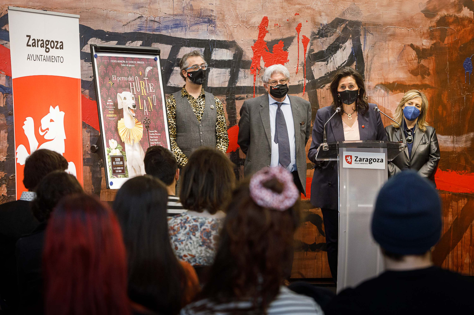 En la presentación, que ha tenido lugar en el hall del Teatro Principal, han participado la concejala de Educación del Ayuntamiento de Zaragoza, Paloma Espinosa, el gerente del Patronato de Artes Escénicas y de la Imagen, José María Turmo, la jefa del Servicio de Educación, Fe María Galve, y el propio director Paco Formento.