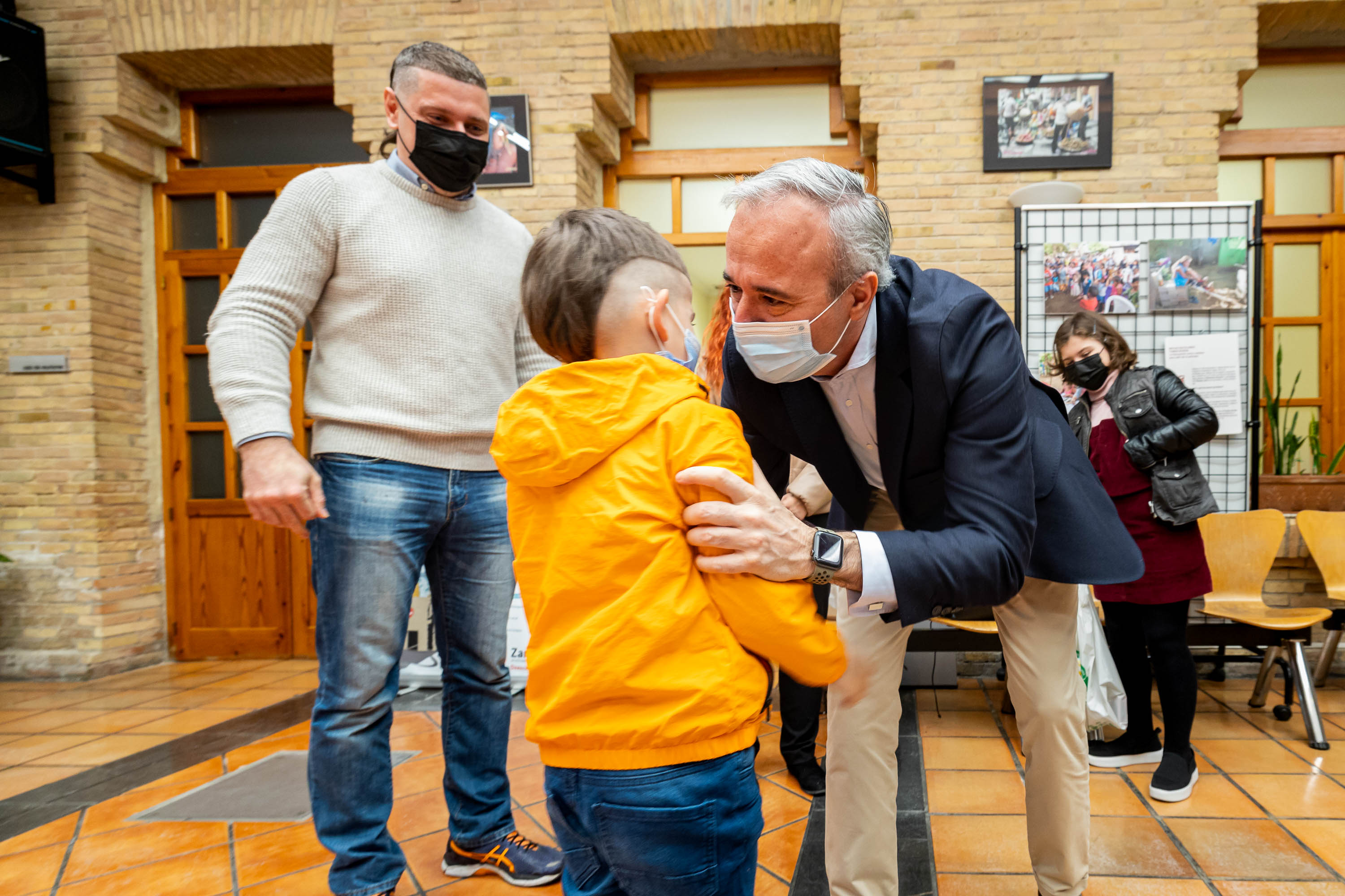 El alcalde Jorge Azcón ha mantenido un encuentro en la Casa de las Culturas con dos familias ucranianas que han llegado a Zaragoza huyendo de la invasión rusa