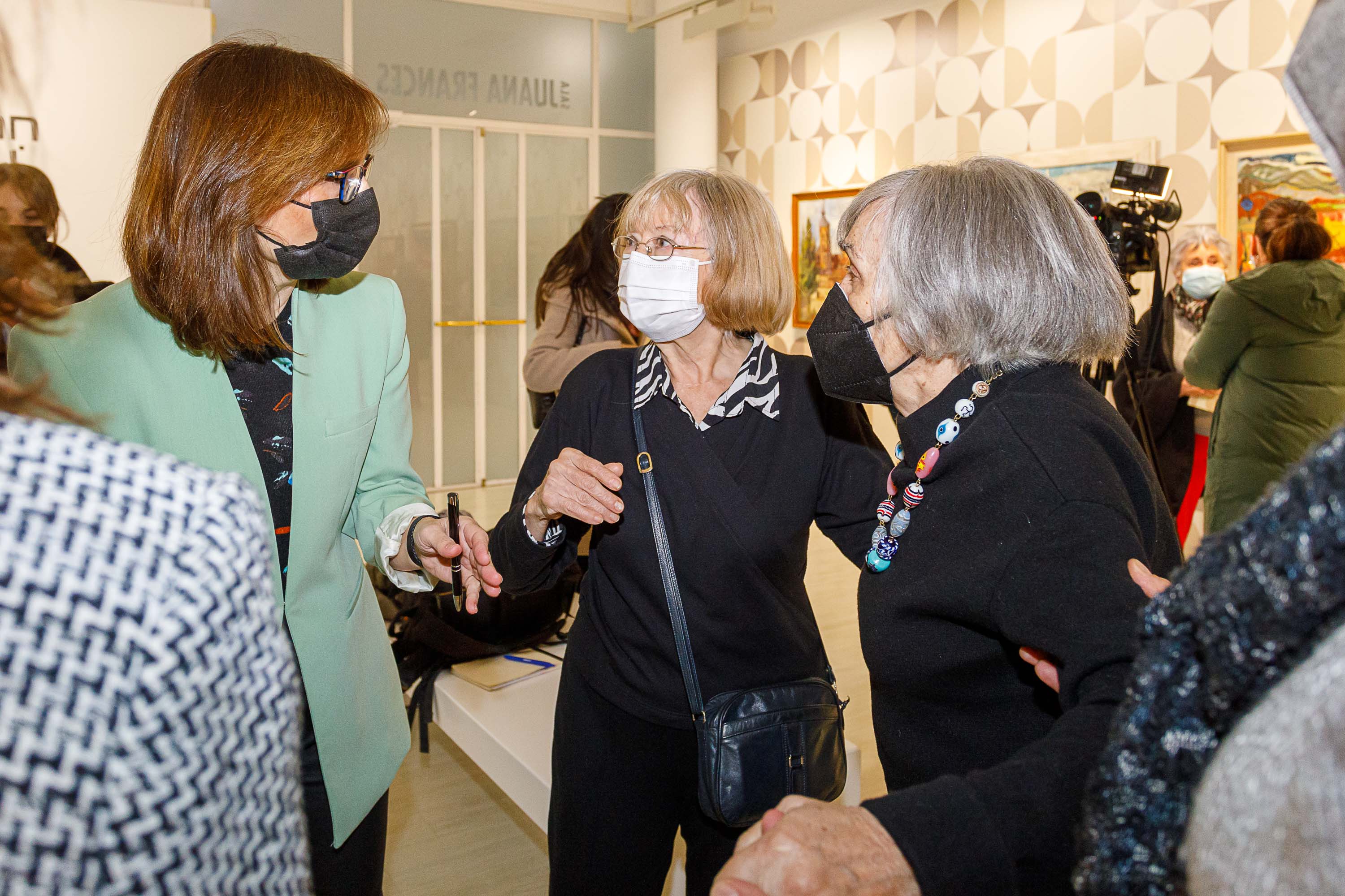 Julia Dorado, Pilar Moré, Maite Ubide, Cristina Remacha y Carmen Salarrullana han podido contemplar hoy sus obras expuestas en una sala que también lleva nombre de mujer, junto a las de otras compañeras del momento que ya no están, y que han estado representadas por sus familiares.