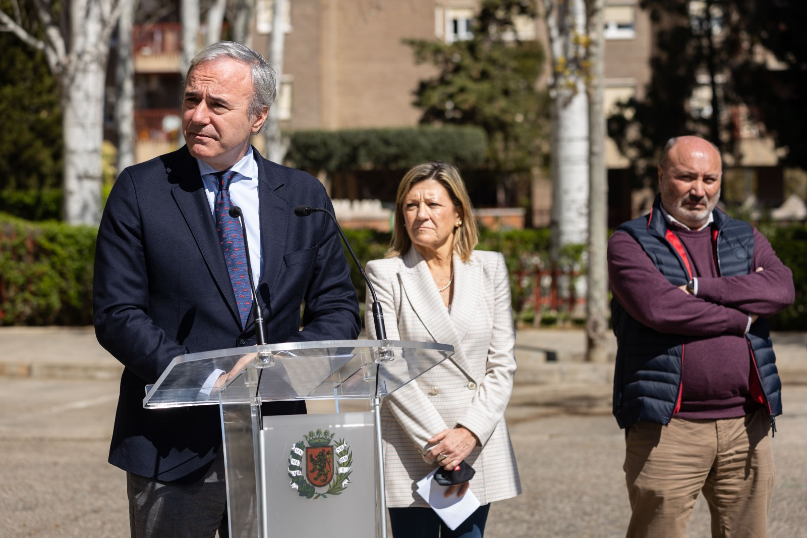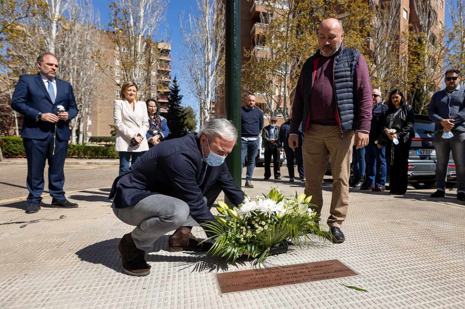 En el homenaje han participado el alcalde de Zaragoza, Jorge Azcón y la concejala delegada para las Víctimas del Terrorismo, Patricia Cavero, que han realizado una ofrenda de flores acompañados por la familia de Escuder, entre ellos su hermano Gregorio Escuder.
