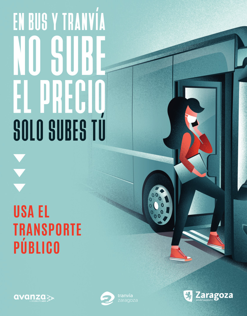 El Ayuntamiento de Zaragoza inicia esta semana una campaña de comunicación para promover el uso del transporte público. Esta iniciativa, que se realiza de manera coordinada con AVANZA -empresa concesionaria del servicio de bus- y Los Tranvías de Zaragoza, tiene como lema “En bus y tranvía no sube el precio: sólo subes tú”.