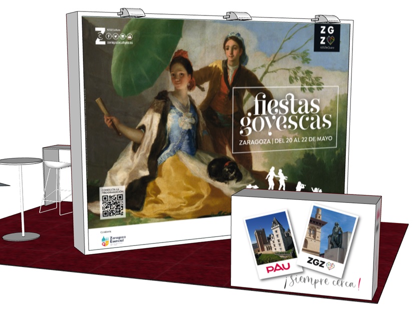 Los visitantes que se acerquen hasta el stand zaragozano podrán descargarse a través de códigos QR toda la programación de las Fiestas Goyescas, un evento en el que arte, turismo, gastronomía, tradición y espectáculo se unen para rendir homenaje a la figura del pintor aragonés más universal. Tres jornadas en las que zaragozanos y visitantes podrán disfrutar de un mercado goyesco, un campamento napoleónico, recreaciones vivientes de los cuadros más populares del pintor, desfiles y un videomapping goyesco ‘Goya, el trazo maestro’, el cual se proyectará por las noches sobre la fachada de la casa consistorial.