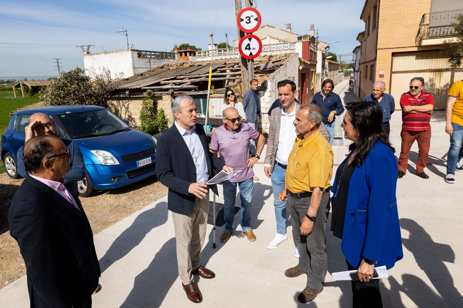 La calle Salitrería del barrio de Alfocea que une el camino de Alfocea y el de la Poza, en la zona baja, cuenta con una imagen renovada después seis meses de obras. Los trabajos se han desarrollado desde el Área de Infraestructuras del Ayuntamiento de Zaragoza dentro del convenio con la Diputación Provincial de Zaragoza. En la renovación integral, que ha visitado esta mañana el alcalde de Zaragoza, Jorge Azcón, el consejero de Participación y Relación con los Ciudadanos, Javier Rodrigo, y la concejal de Barrios Rurales, Paloma Espinosa, se han invertido 210.526 euros. Con esta inversión se han mejorado todos los servicios que discurren por esta vía y la han dotado de nueva iluminación y bancos para el disfrute de los vecinos.