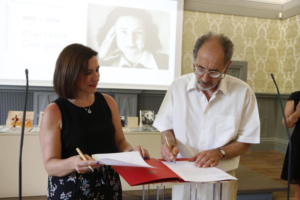 La vicealcaldesa y consejera de Cultura y Proyección Exterior, Sara Fernández, junto con el hijo de Pierrette, Jean Anguera, y su nieta Camille Anguera, presidieron los actos que tuvieron lugar en el Museo Pablo Gargallo, y que se iniciaron con la firma de la nueva donación que la familia realiza al museo. En esta ocasión se trata de obra de carácter documental, entre la que se encuentran libros de la biblioteca personal de Gargallo, cartas de su correspondencia personal y profesional, fotografías, recortes de prensa, revistas de artes e incluso tesis doctorales.