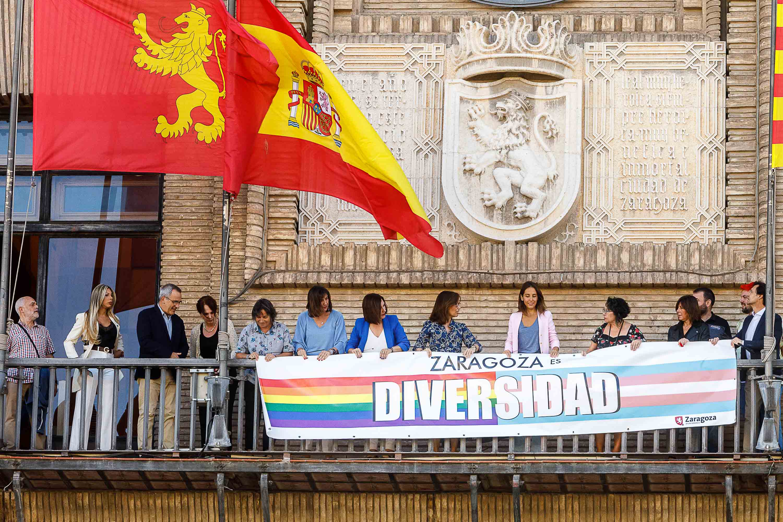 “Este año hemos podido volver a colgar la pancarta, la misma que colgamos el año pasado y que tuvimos que retirar por cuestiones judiciales y que luego llevamos a la manifestación del Orgullo, pero creemos que en una institución como es el Ayuntamiento de Zaragoza tiene que quedar claro y ondear esa pancarta para evidenciar que Zaragoza es una ciudad diversa”, ha manifestado Fernández en declaraciones a los medios de comunicación.