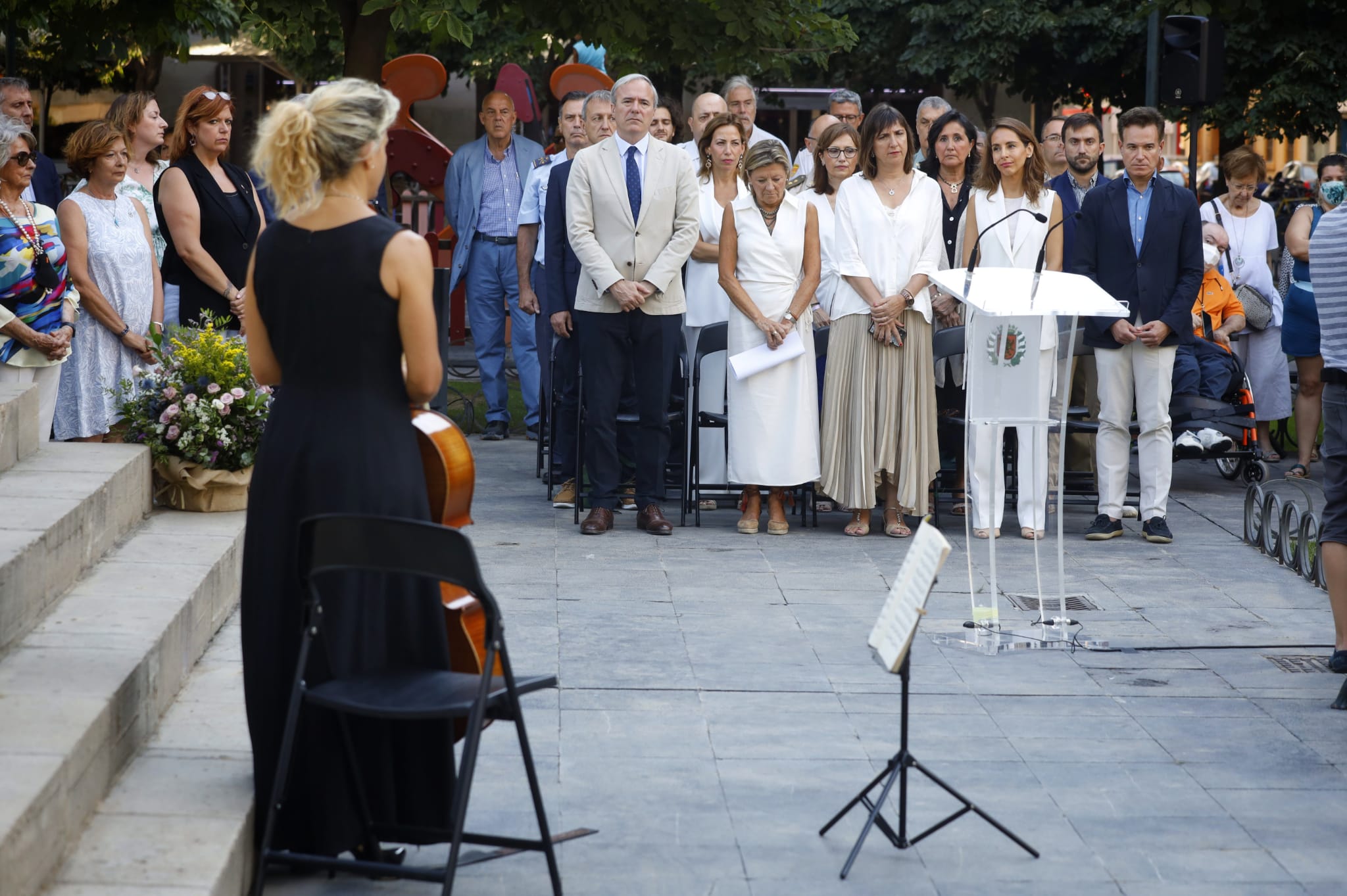 Previamente se han guardado cinco minutos de silencio con los que Zaragoza se ha sumado al homenaje a todas las víctimas promovido por la Federación Española de Municipios y Provincias. Además se ha recordado a Miguel Ángel Blanco, secuestrado y asesinado por la banda terrorista ETA hace justamente 25 años. Representantes de diferentes grupos políticos municipales han leído el manifiesto propuesto por la Fundación Miguel Ángel Blanco "La unidad a ti debida".