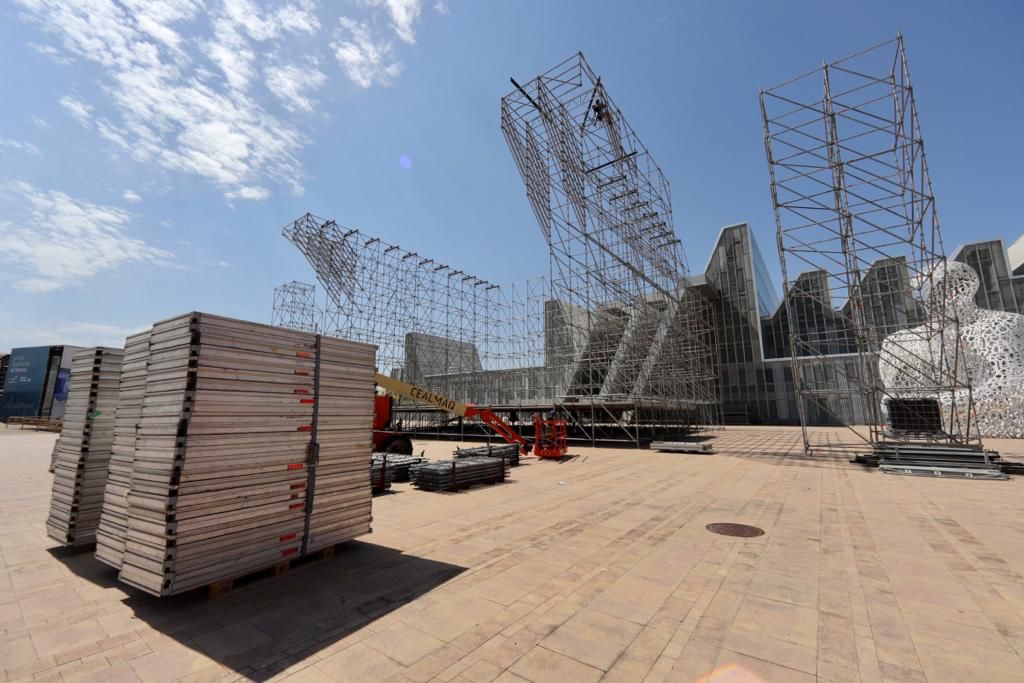 La zona de la antigua Expo 2008 comienza a transformarse en el recinto de 80.000 metros cuadrados que acogerá el festival Vive Latino. Las tareas, que se centran ahora en el montaje de los escenarios principales que acogerán los conciertos de casi cuarenta artistas, comenzaron esta semana con el acopio de materiales y el vallado perimetral de la zona.