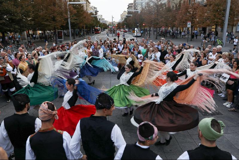 La jota aragonesa ha inundado esta tarde las calles del centro de Zaragoza. La Junta Municipal del Distrito Centro ha organizado este espectáculo cultural con el objetivo de dinamizar el pequeño comercio de la ciudad.