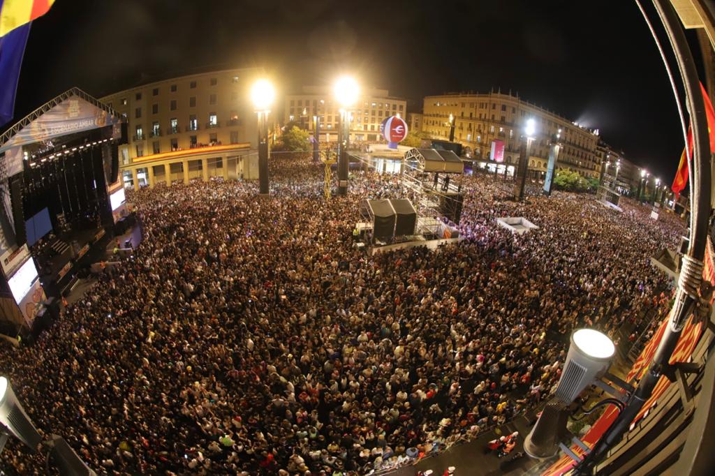 El desfile ha culminado en la Plaza del Pilar y desde el balcón del Ayuntamiento, el alcalde, la vicealcaldesa y consejera de Cultura y los representantes de los joteros se han dirigido a todos los asistentes para anunciar el inicio de las fiestas del Pilar 2022, acto que ha culminado con el ”Canto a la Libertad”, de José Antonio Labordeta, y el tradicional lanzamiento del cohete y los fuegos artificiales.