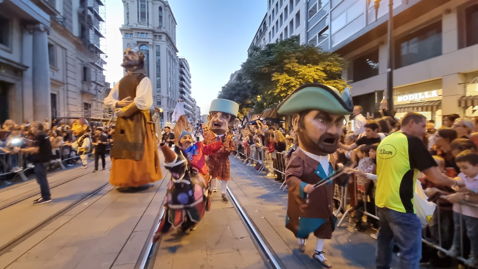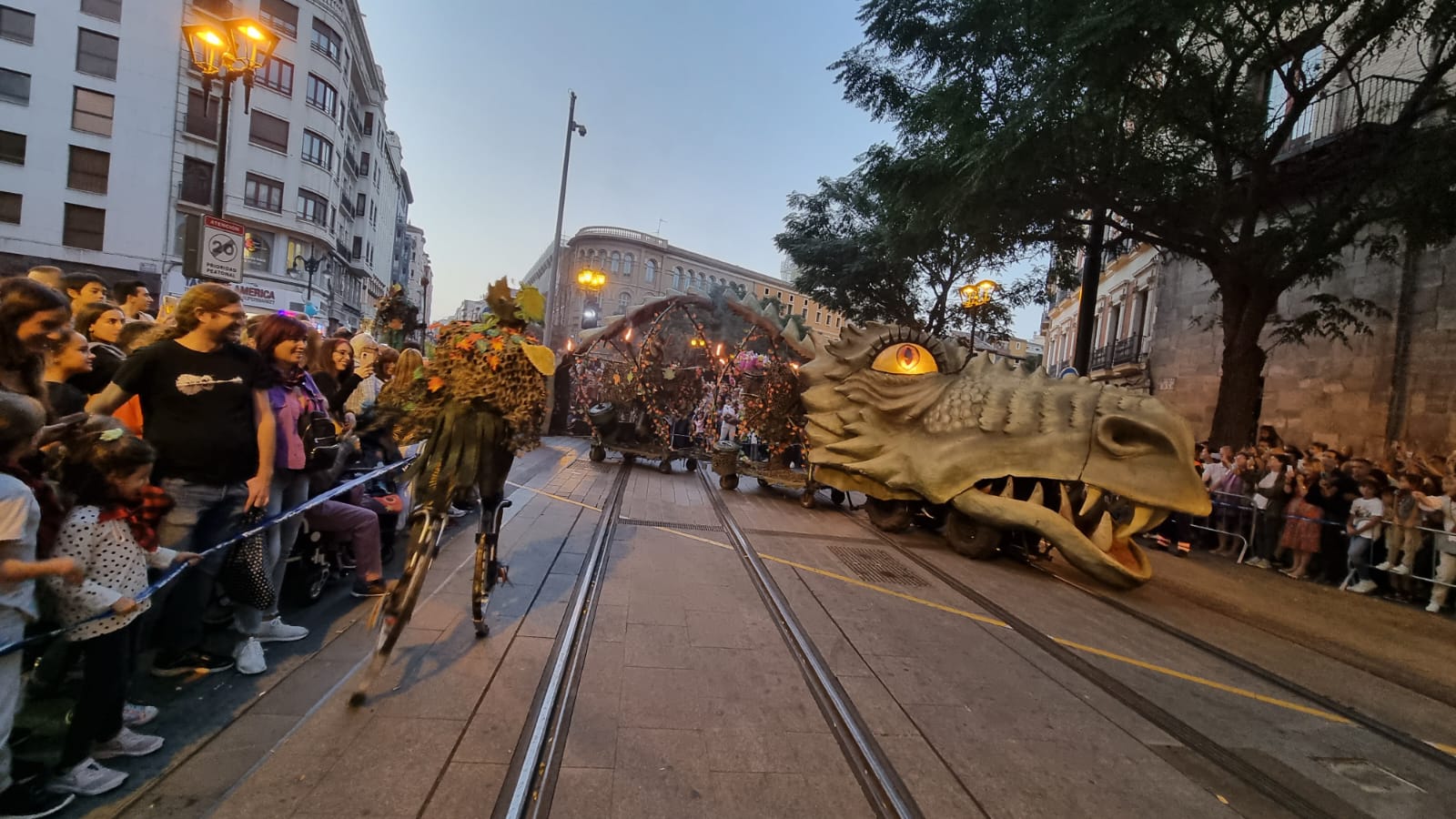 Igualmente, las calles de la ciudad se han llenado de público para disfrutar del pregón, encabezado por la Comparsa de Gigantes y Cabezudos de Zaragoza, y que se ha dirigido hacia la Plaza del Pilar donde ha tenido lugar la lectura del pregón