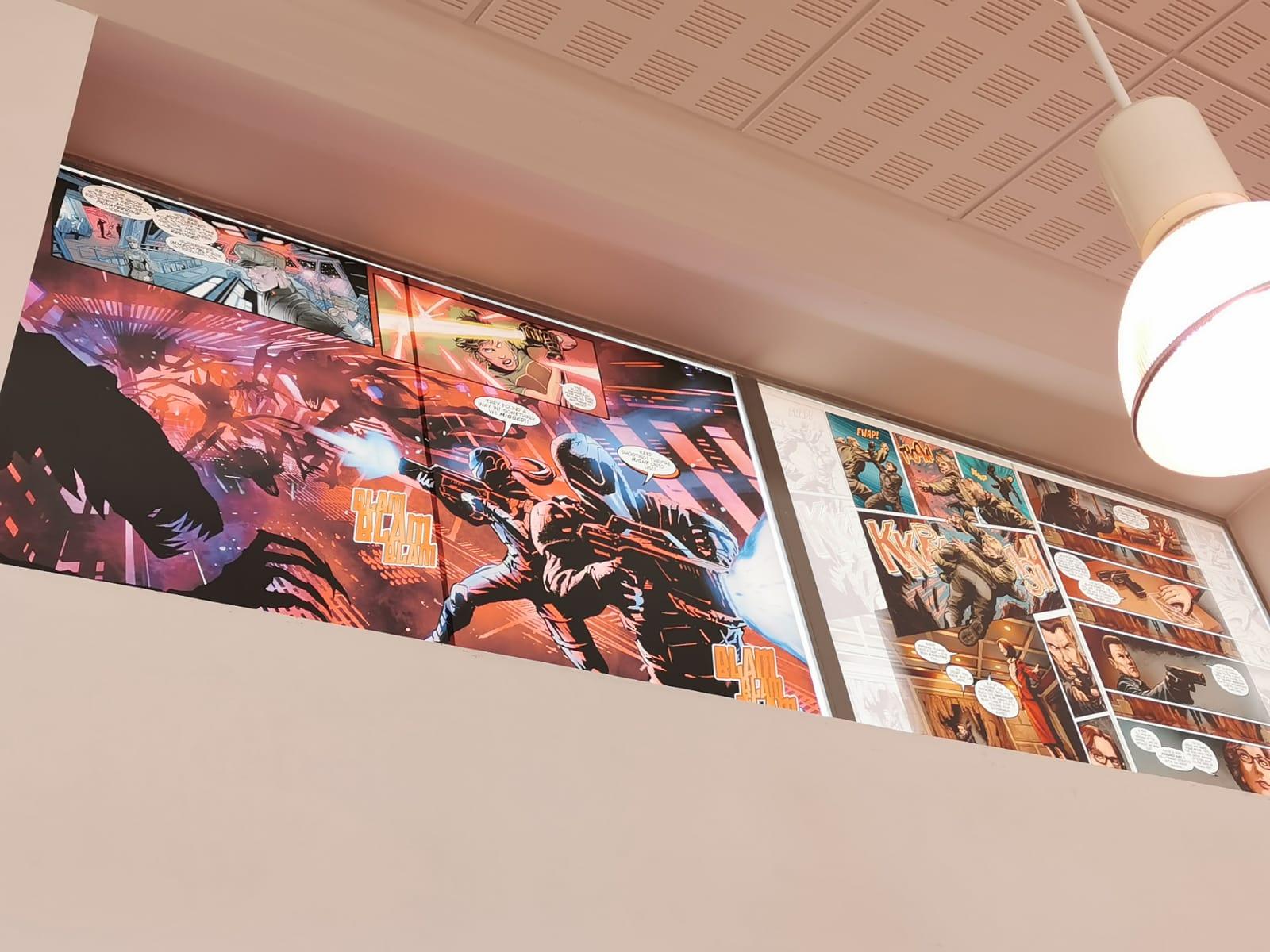 El proyecto tiene el objetivo de dar solución, de manera artística, al problema de exceso de luz solar que tenían las salas de lectura. Se intervienen así los ventanales altos de la biblioteca, ubicada en la primera planta del edificio del Centro Cívico La Almozara, con el objetivo de mejorar la visibilidad de determinadas zonas para los usuarios con la colocación de unos vinilos de gran tamaño, gracias al montaje de las brigadas municipales de Arquitectura, que recogen la obra gráfica de Marta Martínez, Josema Carrasco, Luis Grañena y David Daza en la Sala de Adultos y, Olga Morrós y Blanca Bk en la Sala Infantil.