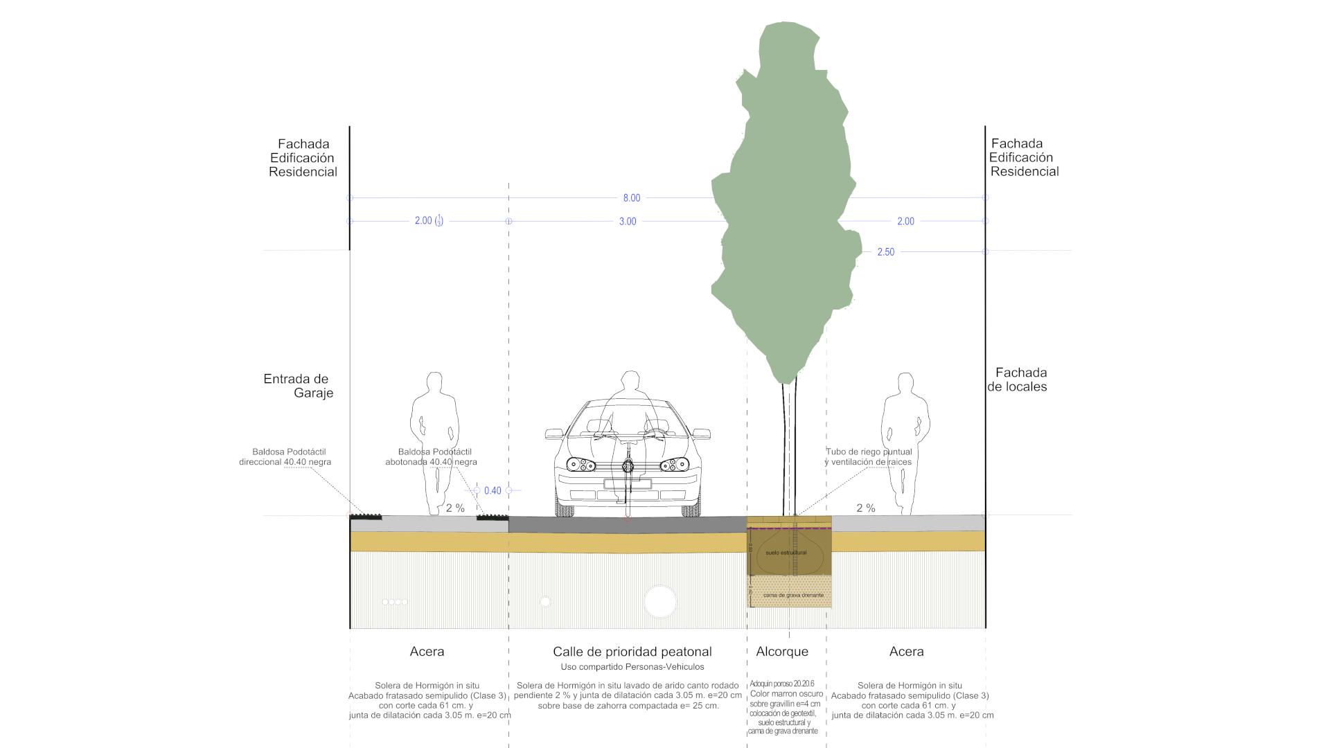 Además de ganar espacio peatonal y pacificar el tráfico, la reforma introducirá árboles de pequeño porte y varios parterres con plantas arbustivas que ayuden a mejorar la calidad ambiental de la calle y contribuyan a mitigar el efecto isla de calor. Se aprovechará también para colocar algún banco y se renovarán todas las redes de agua, saneamiento y alumbrado, que incorporará tecnología led más eficiente. Con todo ello, se espera que la actuación contribuya también a revitalizar el comercio.
