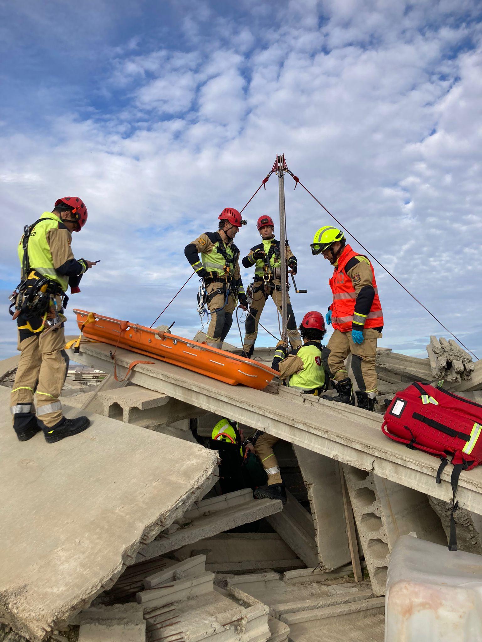 En el ejercicio, que ha comenzado a las 11.30 horas y ha durado dos horas, han intervenido un amplio dispositivo de Bomberos, formado por la unidad de rescate vertical, la unidad canina, la unidad de drones, la ambulancia del 080, y unos 20 agentes, además de voluntarios de protección civil. Sobre el terreno se ha desplegado un Puesto de Mando Avanzado y un punto sanitario donde atender a los heridos y se han trasladado vehículo de salvamento, uno de comunicaciones, y el de drones, entre otros.
