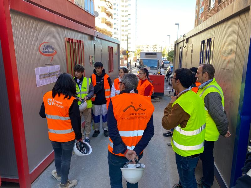 Alumnos de Formación Profesional de la rama de Edificación y Obra Civil han podido conocer de primera mano cómo se gestionan grandes obras públicas como las que está llevando a cabo el Ayuntamiento de Zaragoza. Estudiantes y profesores han visitado recientemente los trabajos de reforma integral de la Avenida Navarra, igual que hicieran hace unos meses con la prolongación de Tenor Fleta.