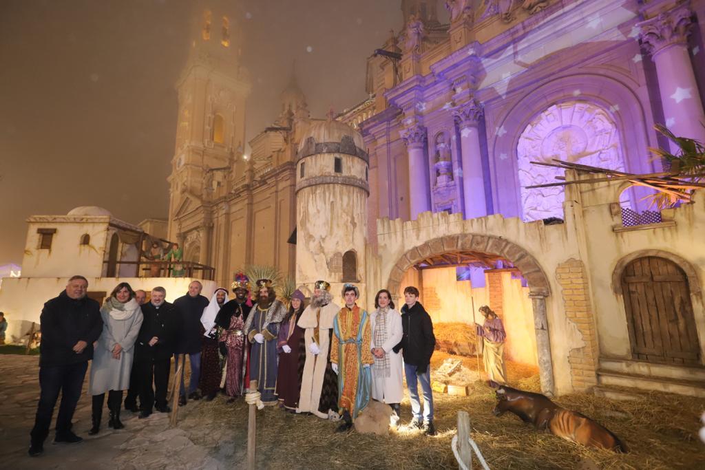 A su llegada a la Plaza del Pilar, Sus Majestades han sido recibidos por la Corporación, encabezada por el alcalde, la vicealcaldesa y el alcalde infantil, para dirigirse al Belén, donde han realizado la tradicional adoración y, seguidamente, desde el balcón del Ayuntamiento saludar a todos los asistentes